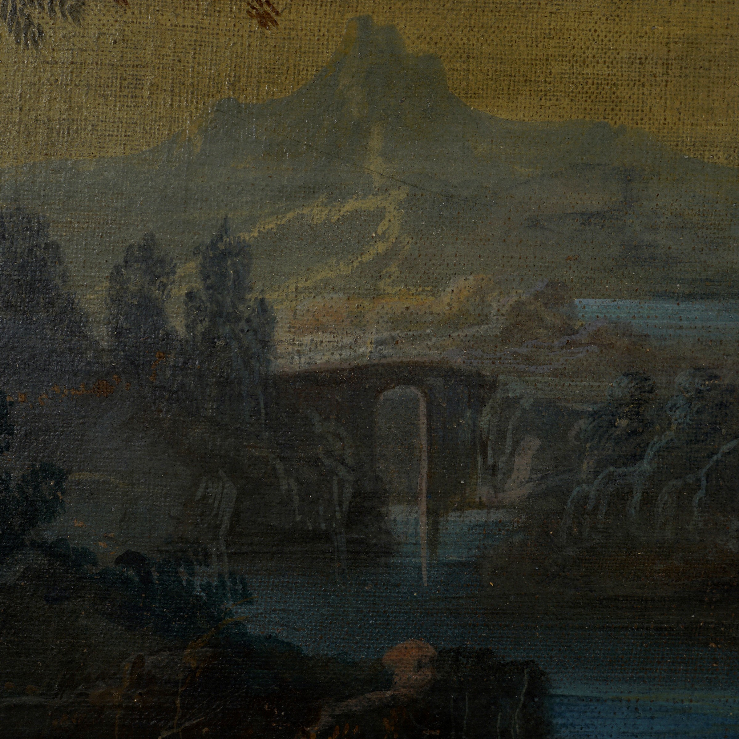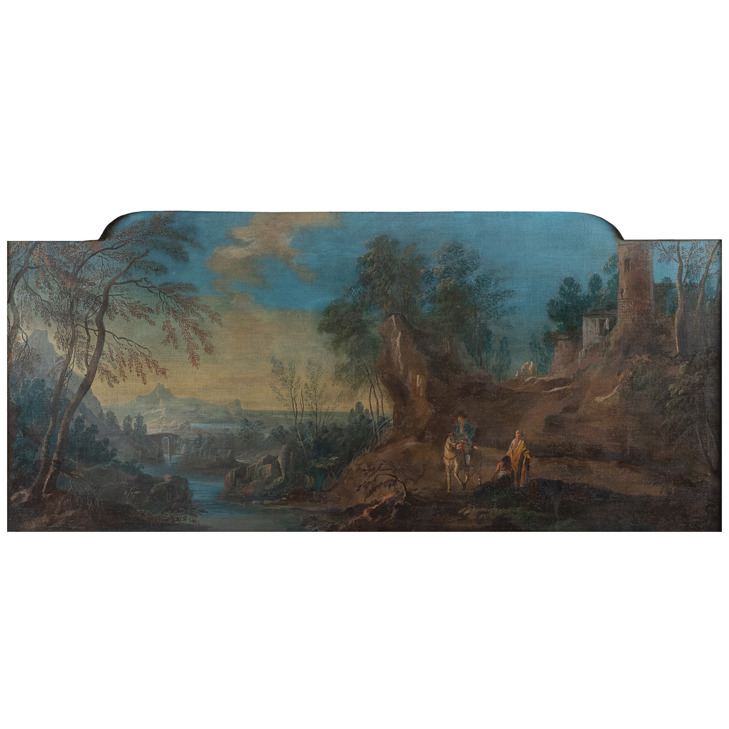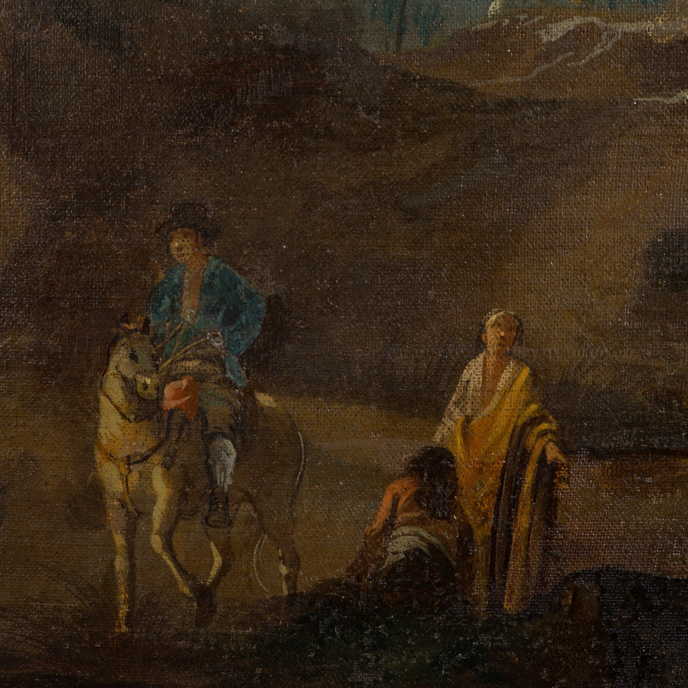 XVII Sec. Paesaggio con figure, olio su tela, entro cornice in legno
