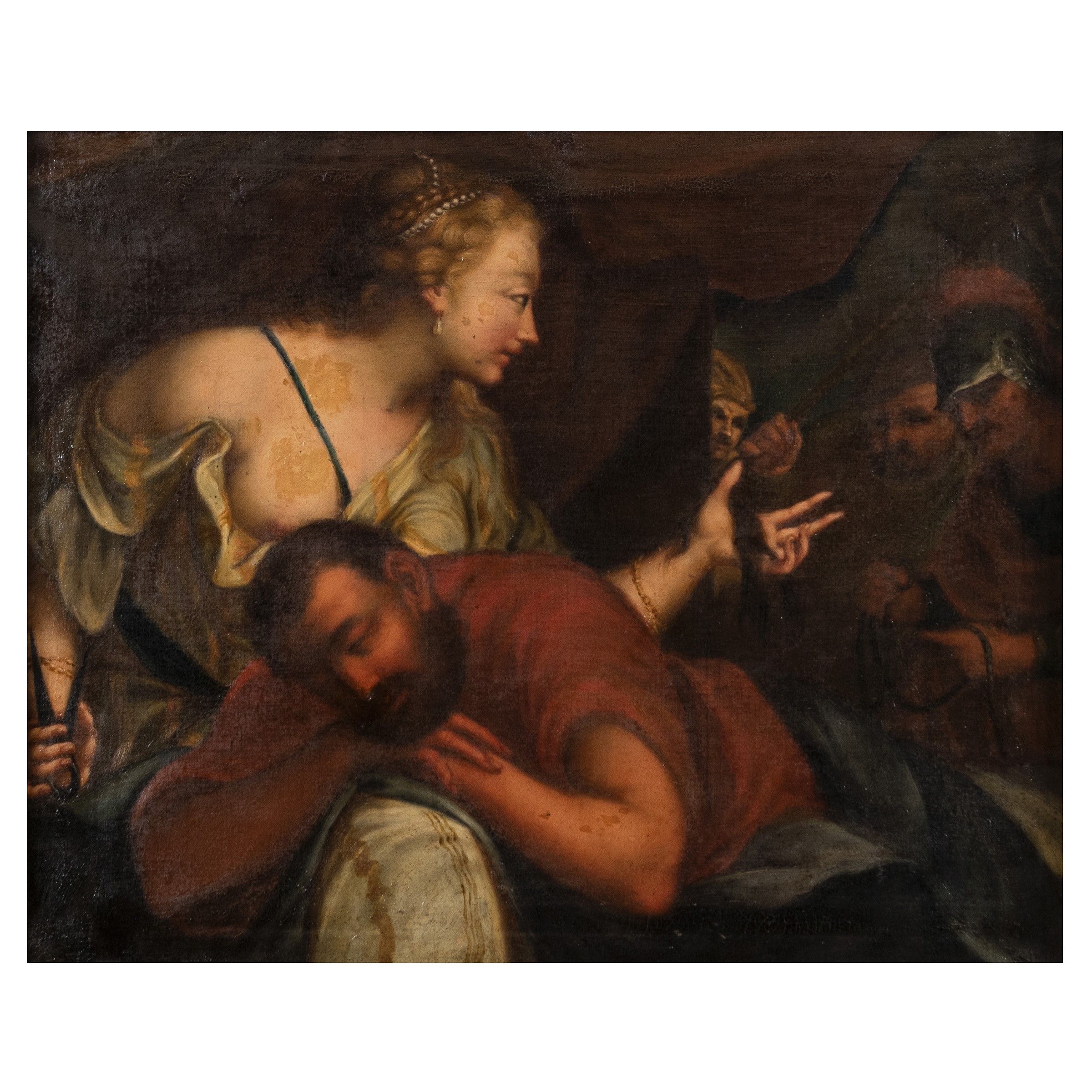 XVIII Sec. Sansone e Dalila, olio su tela, entro cornice
