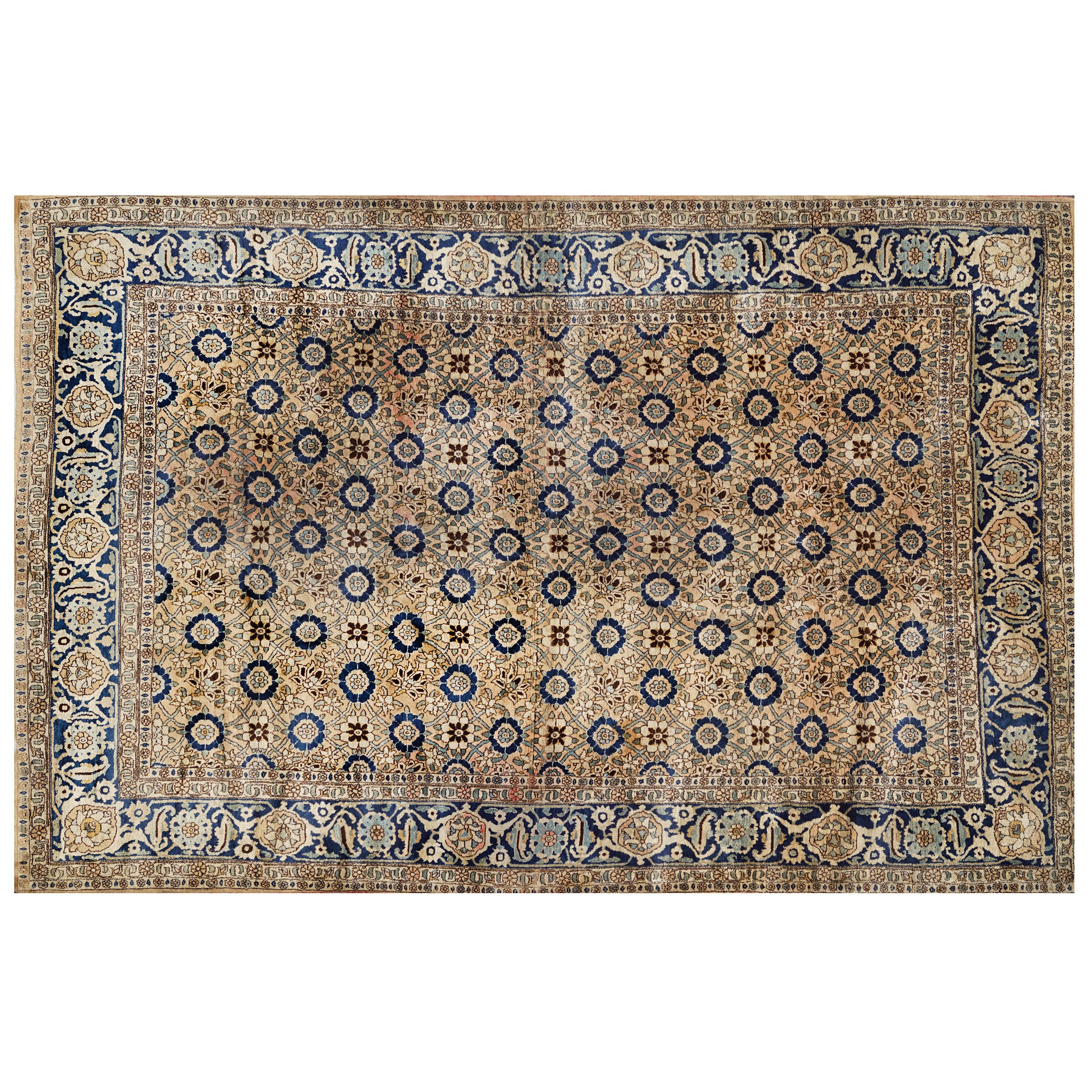XX Sec. disegno floreale su fondo beige e blu, difetti e usure