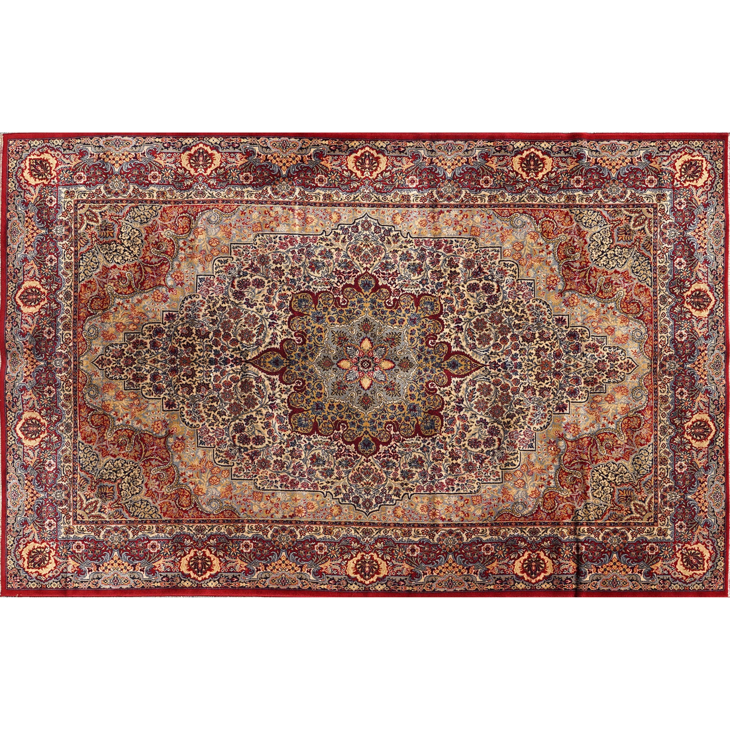 XX Sec. disegno floreale policromo su fondo beige e rosso