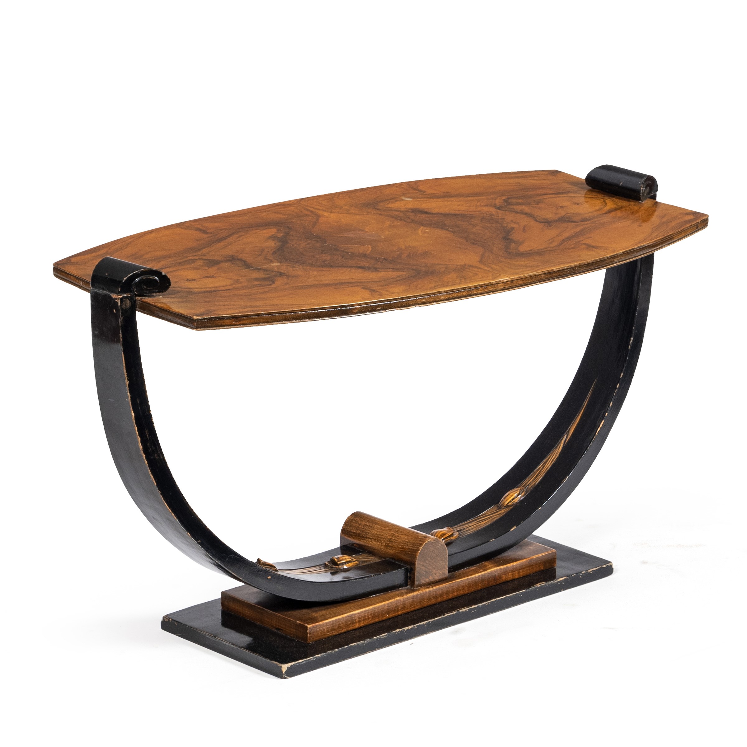 Francia, XX Sec. piano sagomato poggiante su due sostegni riuniti e decorati con motivi floreali