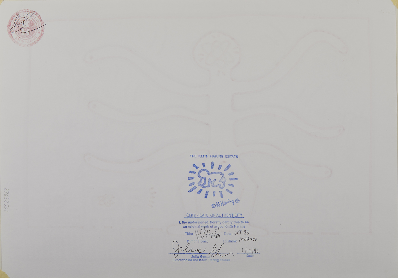 Firma e anno in basso a destra. Al retro timbro Keith Haring Estate.
