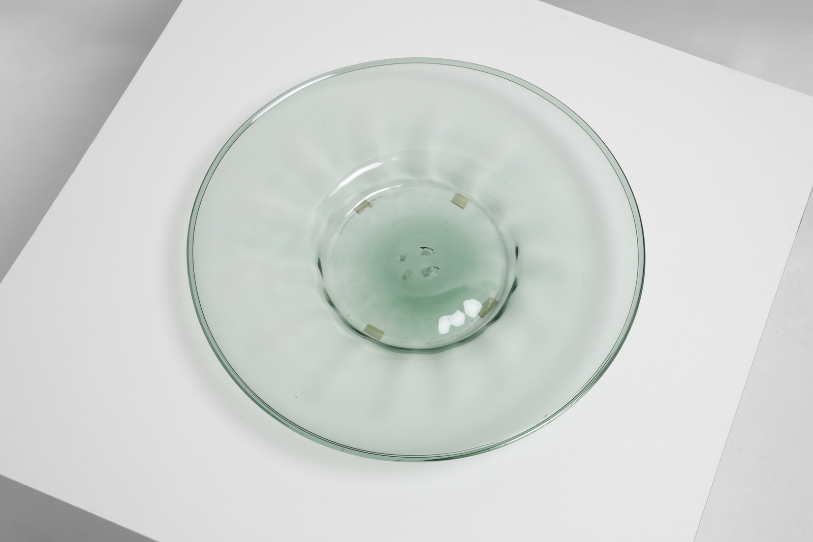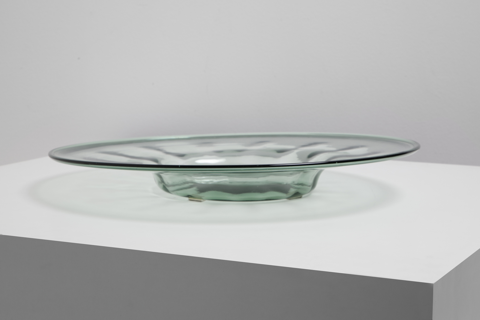 attribuito. Piatto in vetro verdino leggermente costolato