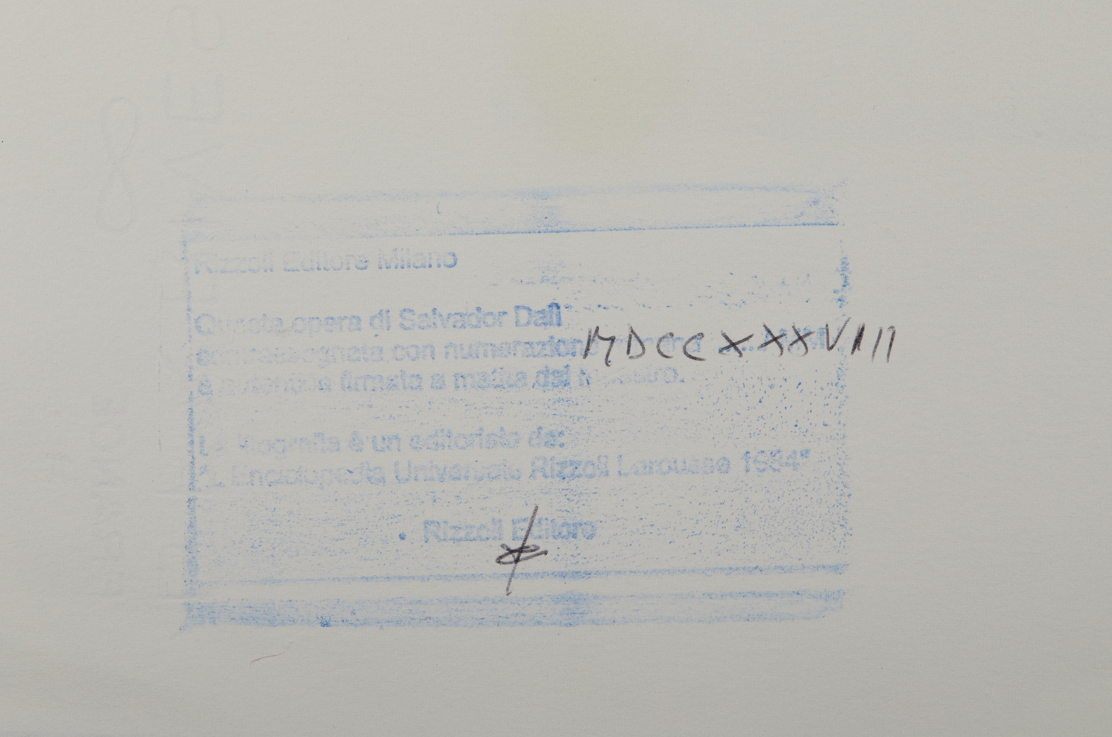 MDCCXXXVIII/ MM. Tiratura e firma in basso a matita. Timbro a secco Daĺ in basso a destra. Rizzoli Editore, Milano. Edizione totale: 2000 esemplari. Carta Bfk Rivers Infinity.