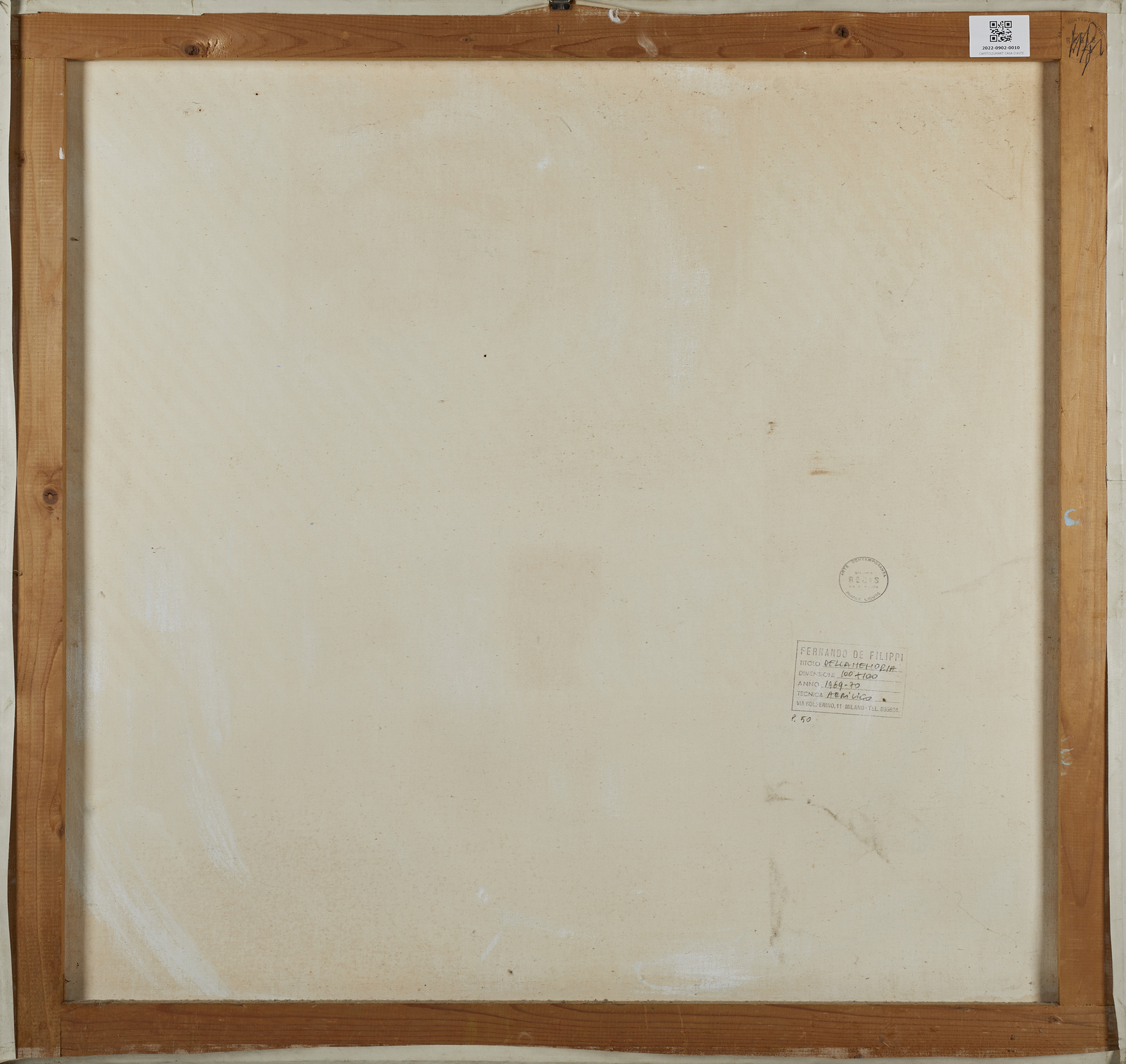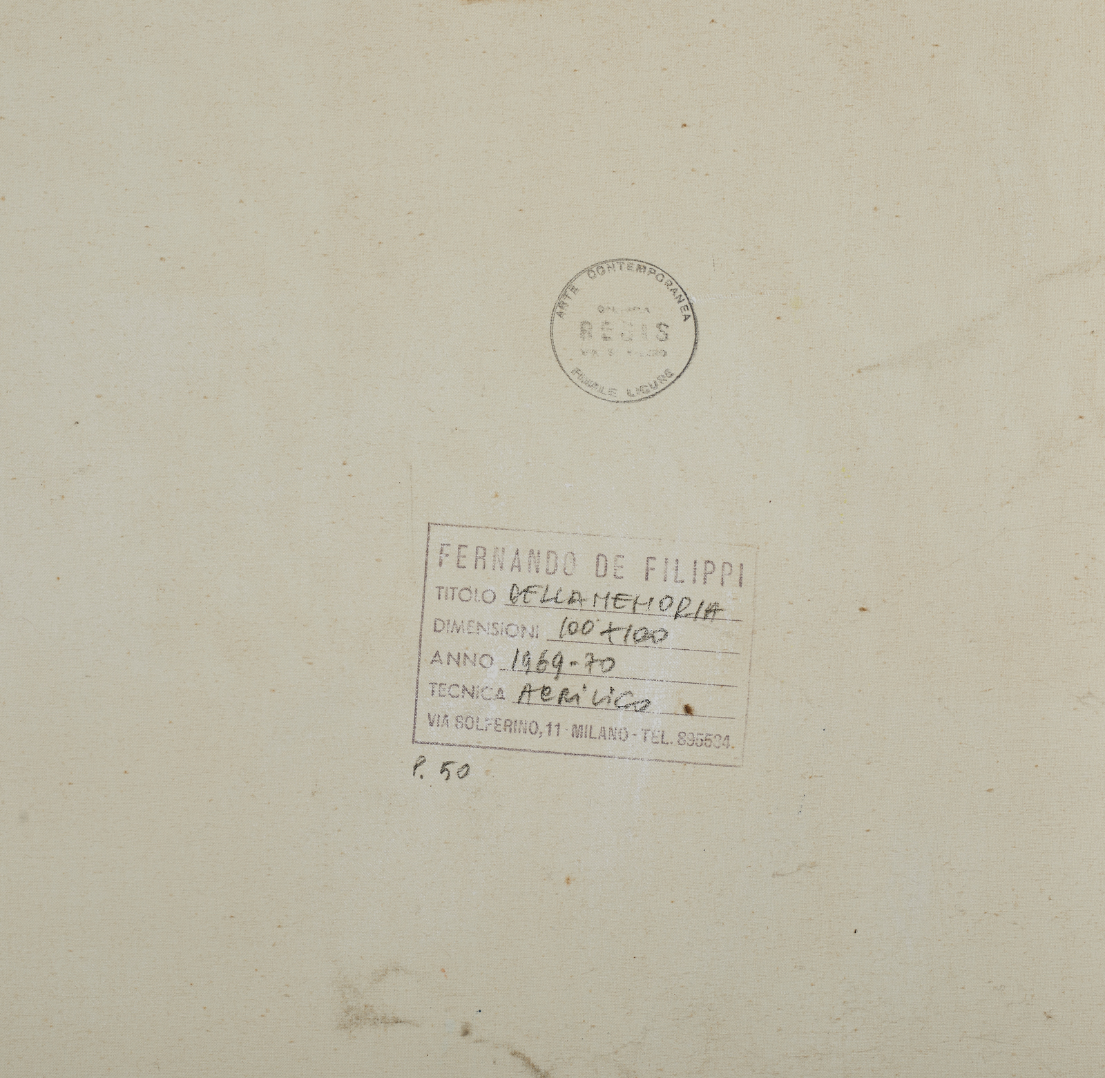 Firma e anno in basso a destra. Al retro timbro descrittivo Fernando De Filippi e timbro Galleria Regis, Arte contemporanea, Genova. Provenienza: Collezione Tacchino. Collezione privata.