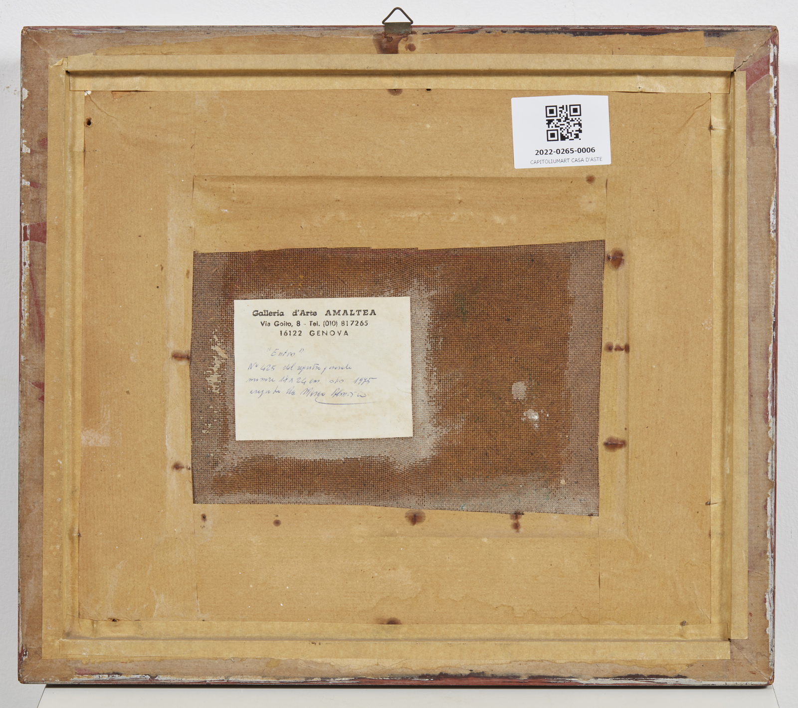 Firma e anno in basso a destra. Al retro cartiglio della galleria d'arte Amaltea, Genova.