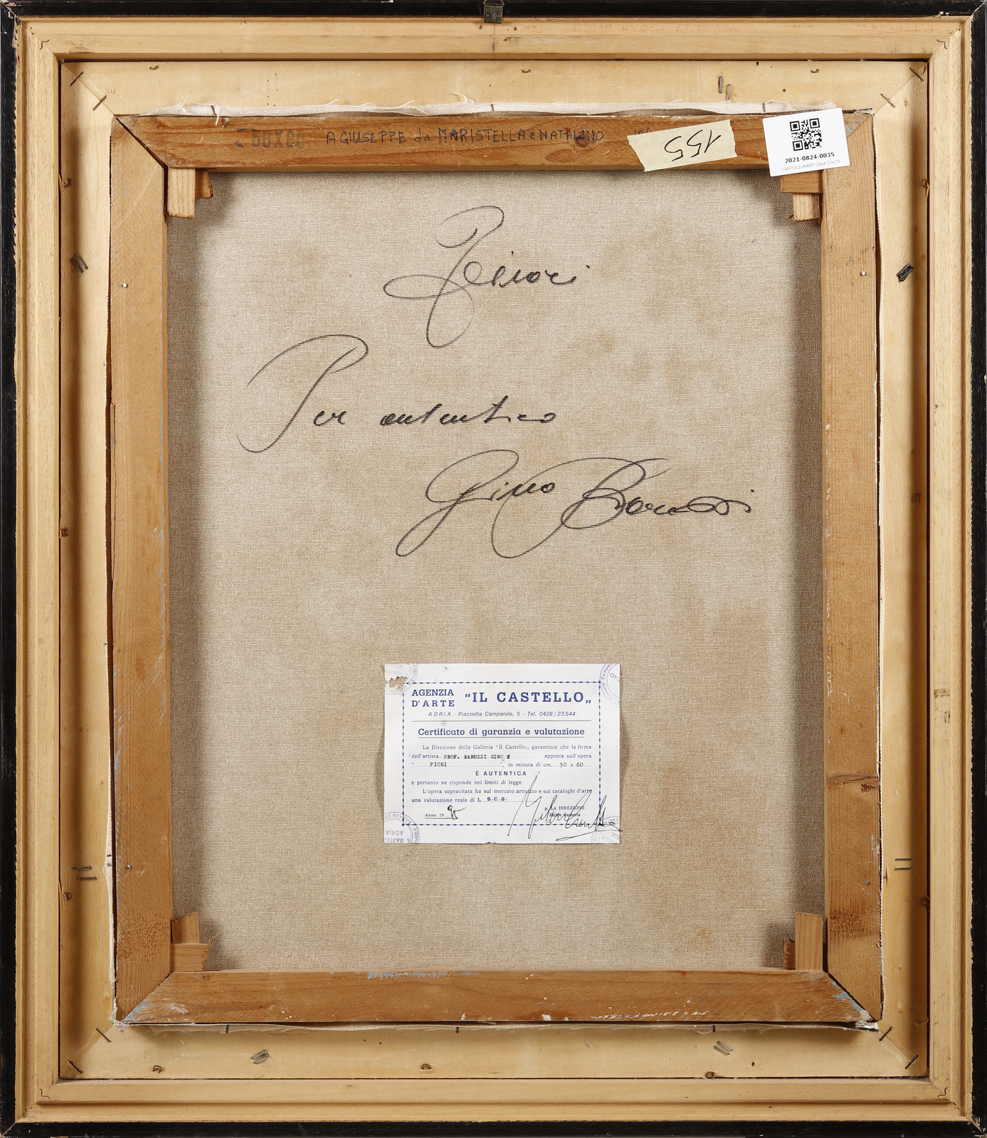 Firma in basso a sinistra. Al retro titolo, firma e cartiglio descrittivo Il Castello, Adria.