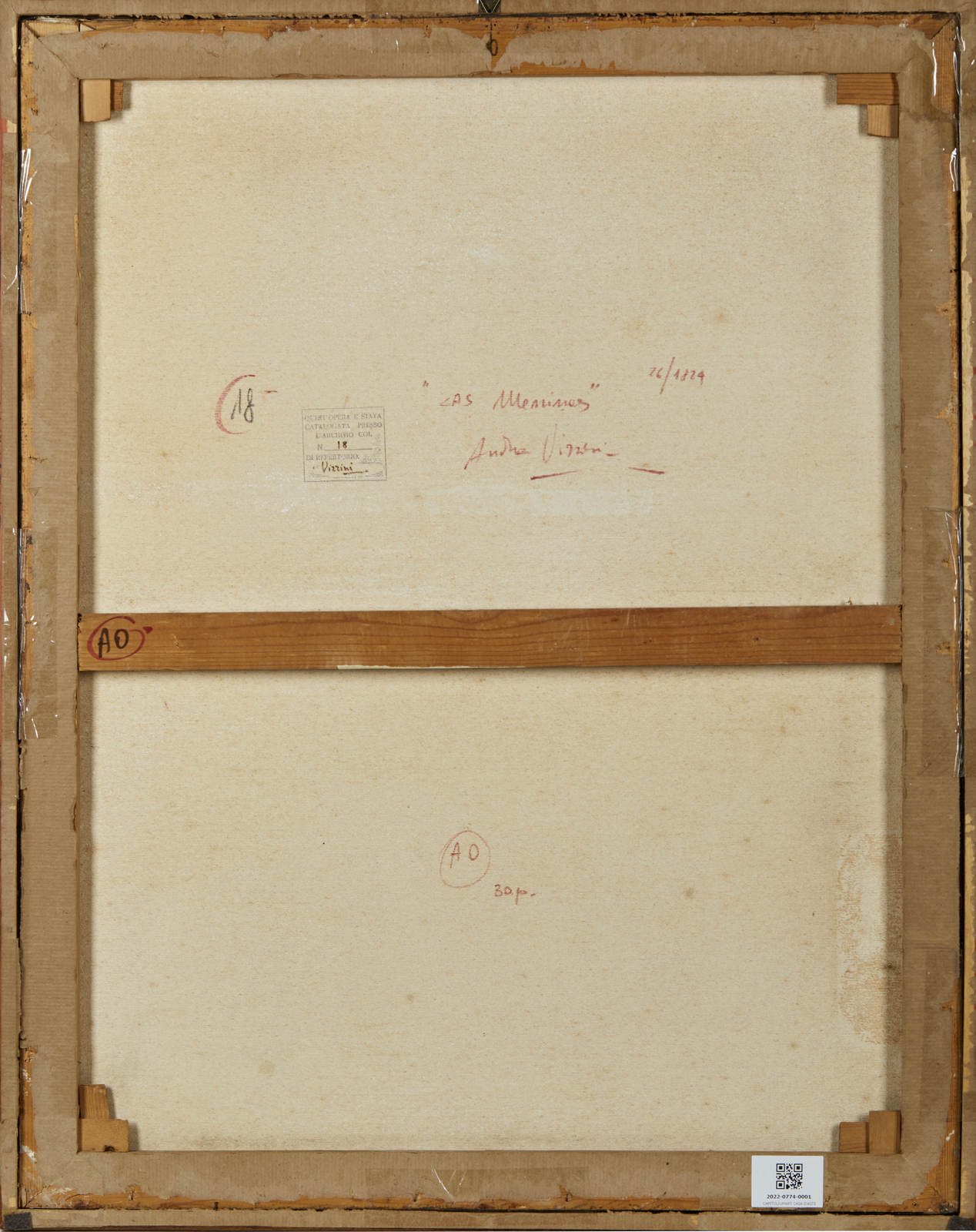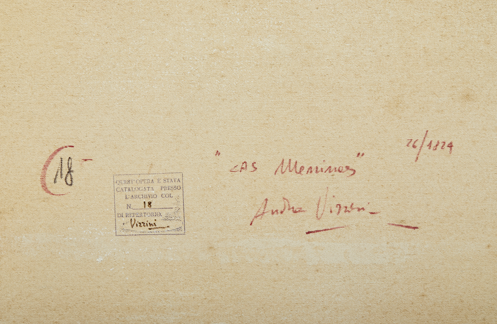 Firma in basso a sinistra. Al retro titolo, firma e timbro dell'artista con relativo numero d'inventario. Autentica dell'artista su fotografia riportante il relativo numero d'inventario. Lievi difetti.