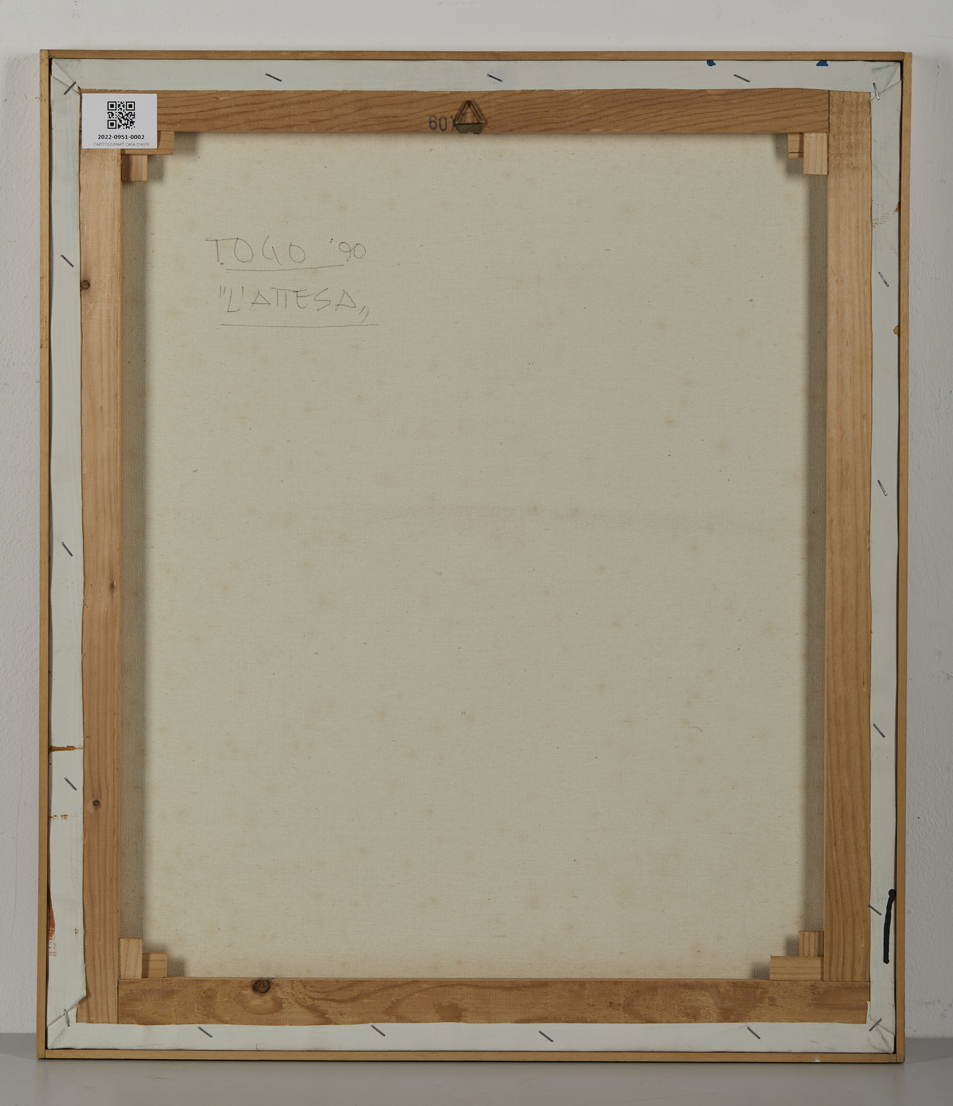 Firma in basso a sinistra. Al retro titolo, firma e anno. Lievi difetti.