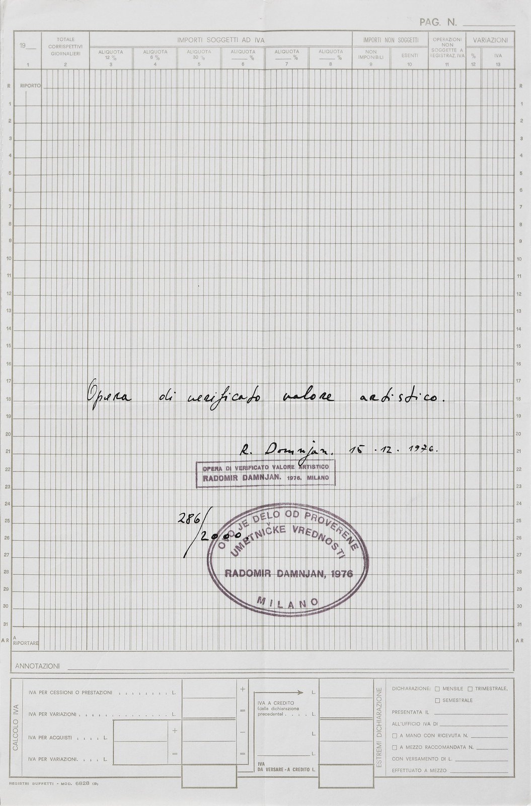 Ttitolo, timbro, firma e anno al centro.