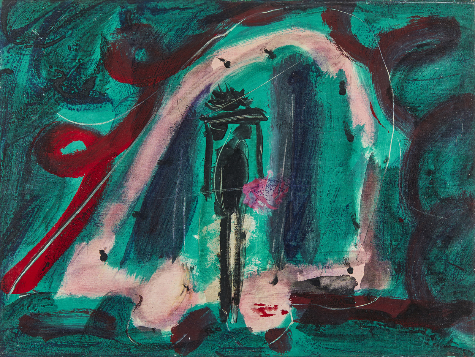 Firma in basso a destra. Al retro titolo, firma e anno. Autentica dell'artista su fotografia. Lievi difetti.
