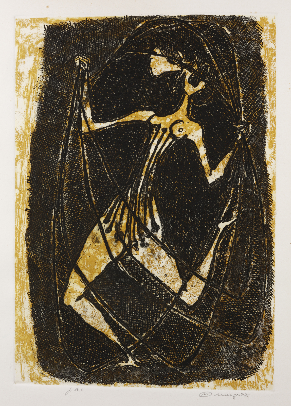P.d.a. Tiratura e firma a matita in basso. Dimensione lastra: 49x34 cm. Difetti.