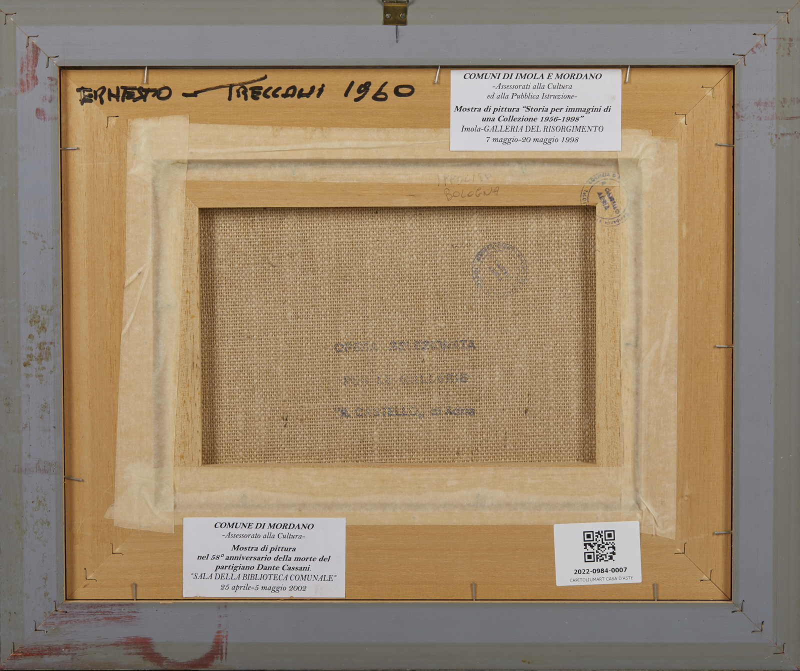 Firma in basso a destra. Al retro timbro Galleria Il Castello, Adria. Autentica dell'artista su fotografia (dimensioni errate).