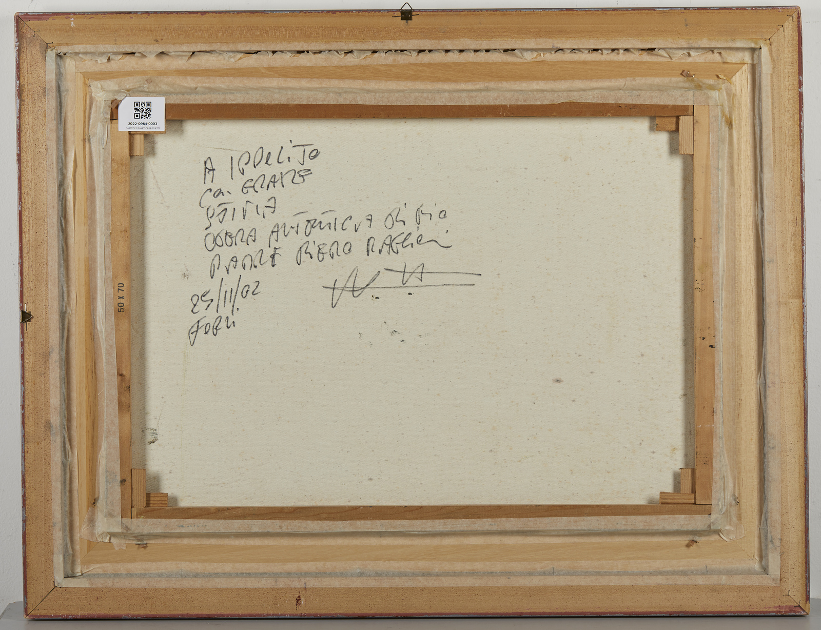 Firma in basso a destra. Dedica al retro. Autentica su fotografia di Antonio Maggioni. Pubblicazione: Piero Maggioni, Galleria d'arte Contemporanea B&B, Canneto s/Oglio, Aprile 1998, p.15.