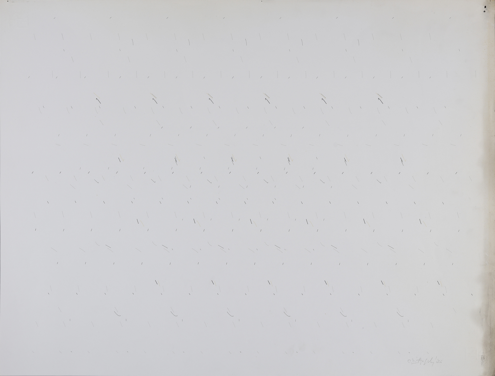 Firma e anno in basso a destra. Difetti.