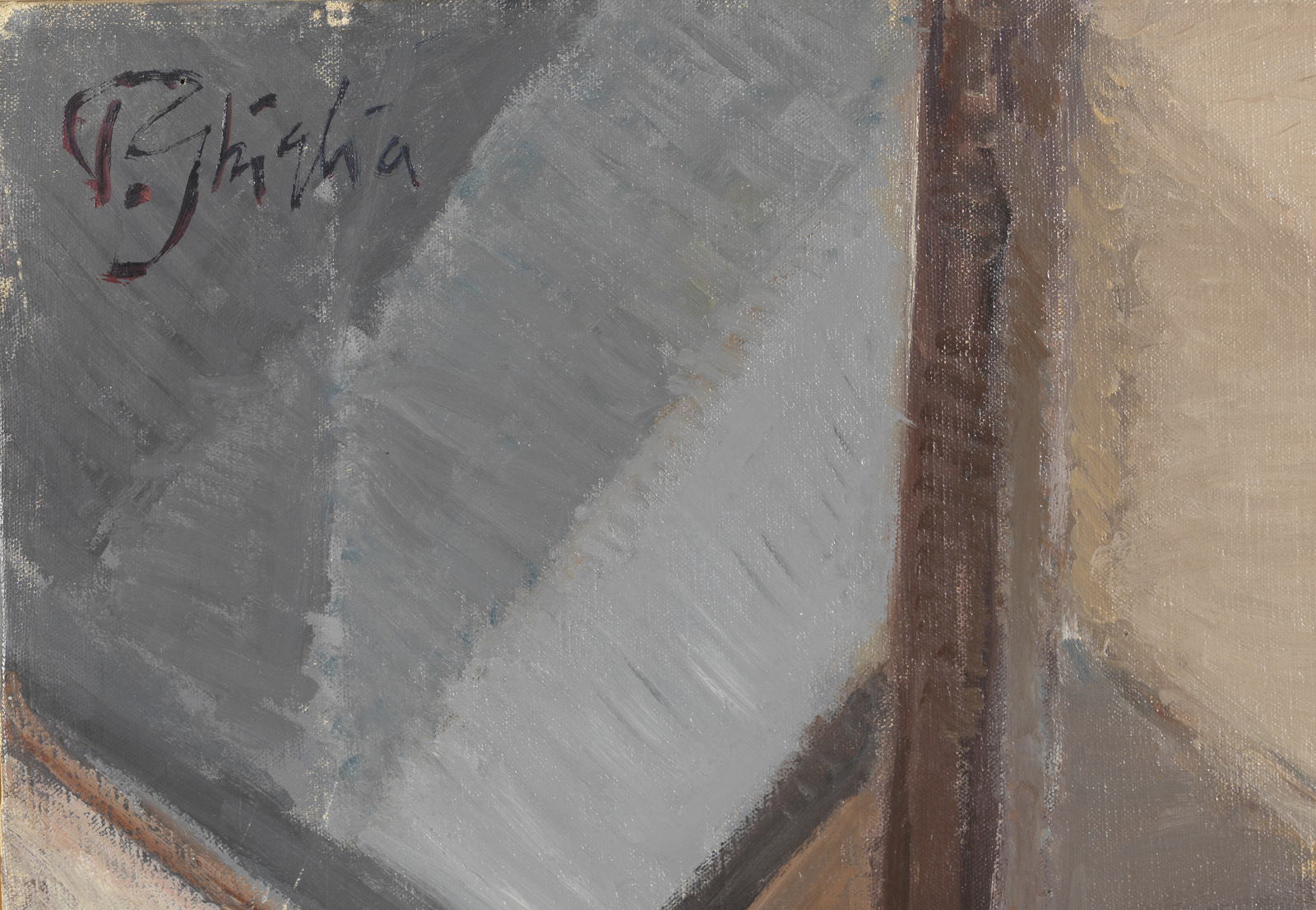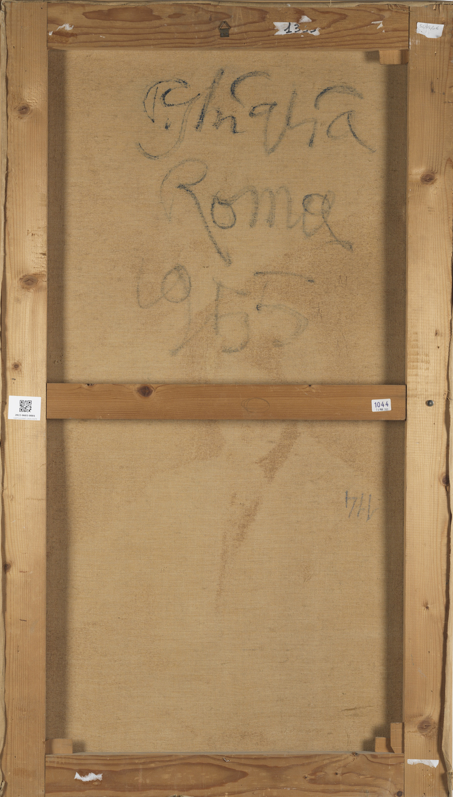Firma in alto a sinistra. Al retro firma e anno. Lievi difetti.