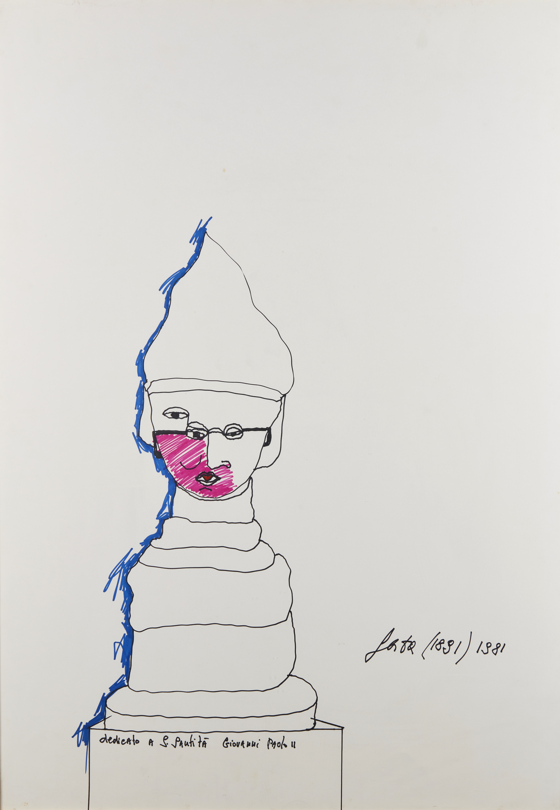 Firma e anno in basso a destra. Dedicato a S.Santità Giovanni Paolo II. Opera archiviata presso l'Archivio Tano Festa - Anita Festa come da documentazione fotografica allegata all'opera riportante il relativo numero d'inventario. Lievi difetti.