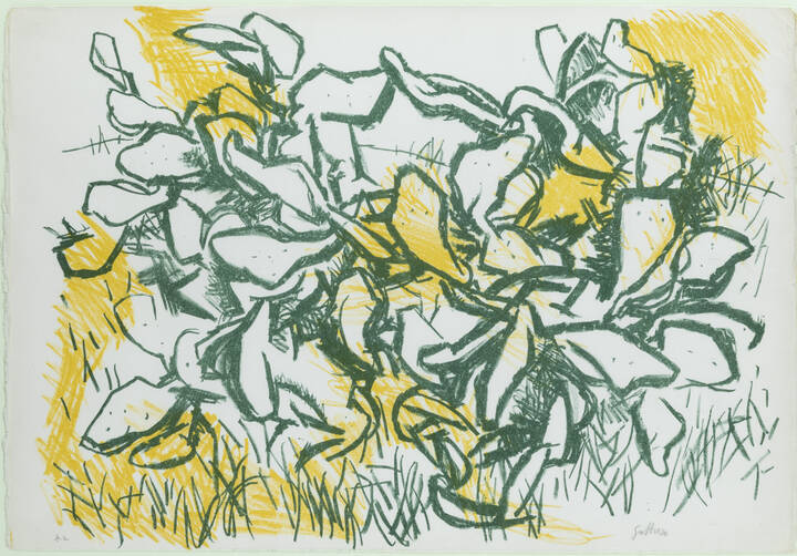 35x50 litografia prova d'autore Opera firmata in basso a destra (a matita sul foglio) Bordi frastagliati piega della carta sotto la firma
