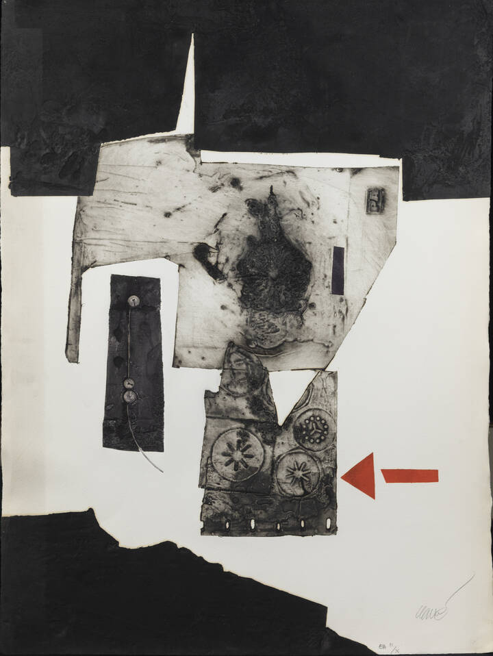 76x57 incisione in rilievo a colori prova d'autore II/X Opera firmata numerata e iscritta EA in basso a destra (a matita) Esemplare non in perfette condizioni (anche macchia al retro)