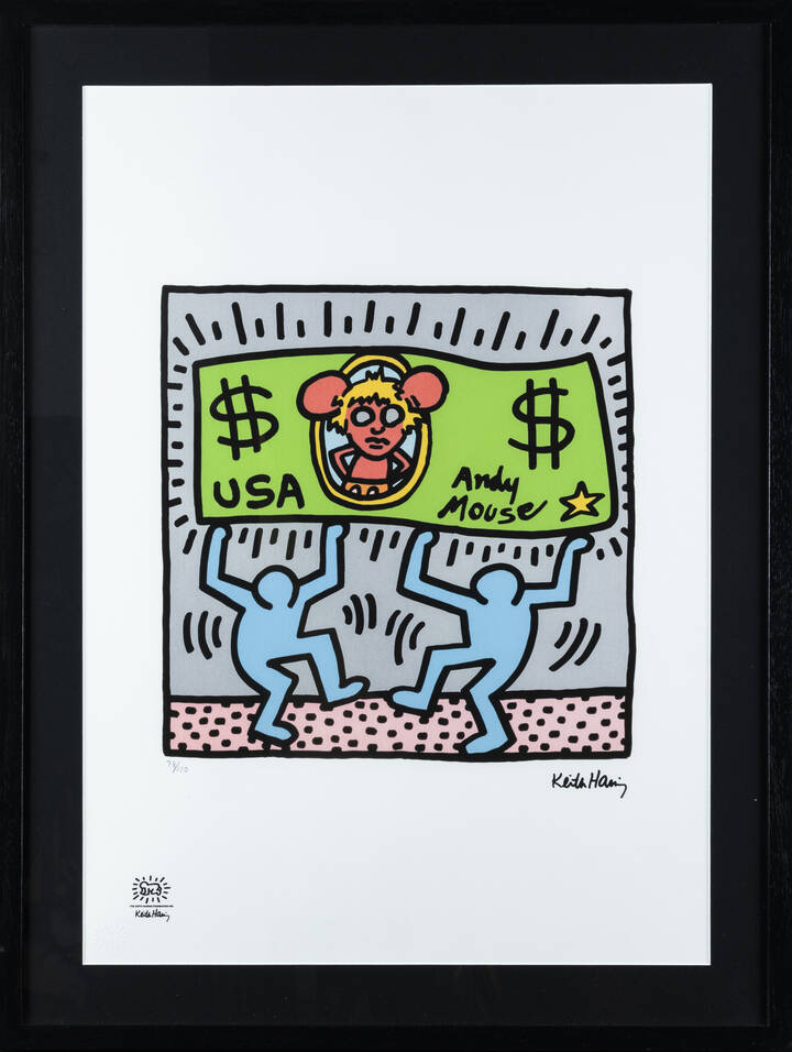 70x50 litografia es. 28/150 Opera firmata in basso a destra (in lastra) e numerata in basso a sinistra sul foglio Timbro The Keith Haring Foundation Inc. in basso a sinistra sul foglio e timbro a secco nell'angolo in basso a sinistra del foglio
