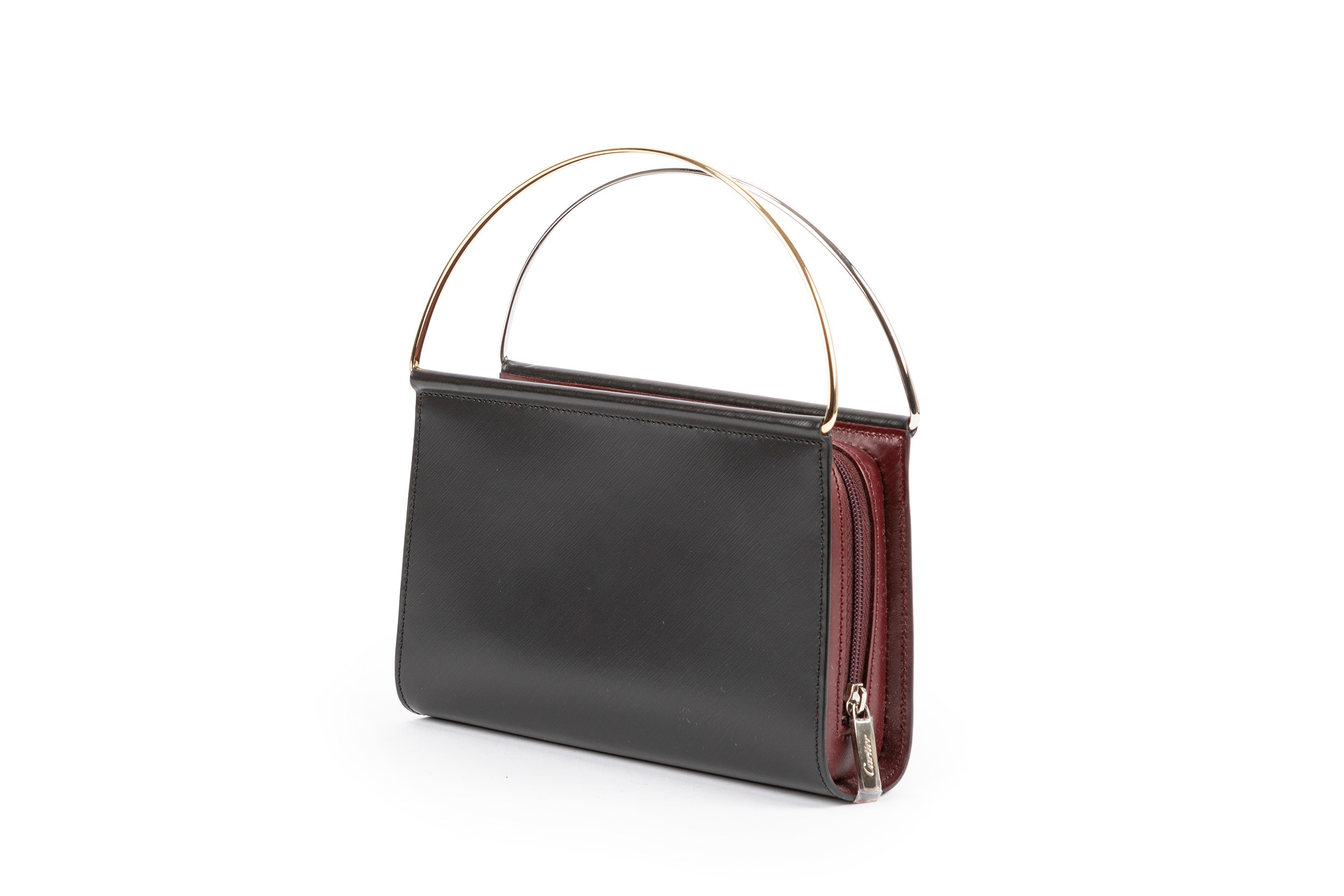 in pelle, color nero e burgundy, manici stendati in metallo bicolore, cm 17, con sacchetto (nuove a mai usata)