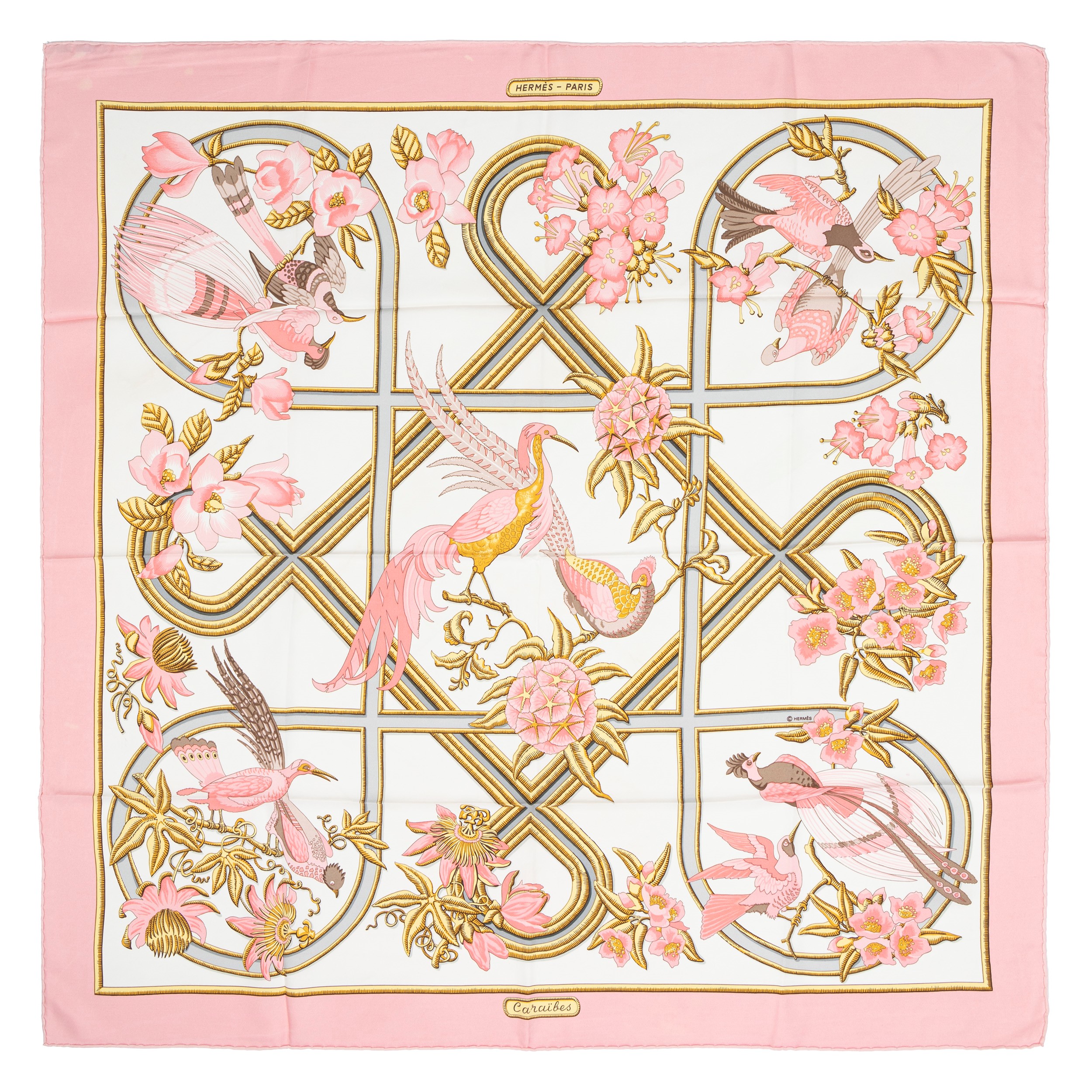 1974 in seta su fondo color panna, bordo color rosa, Christiane Vauzelles (difetti)