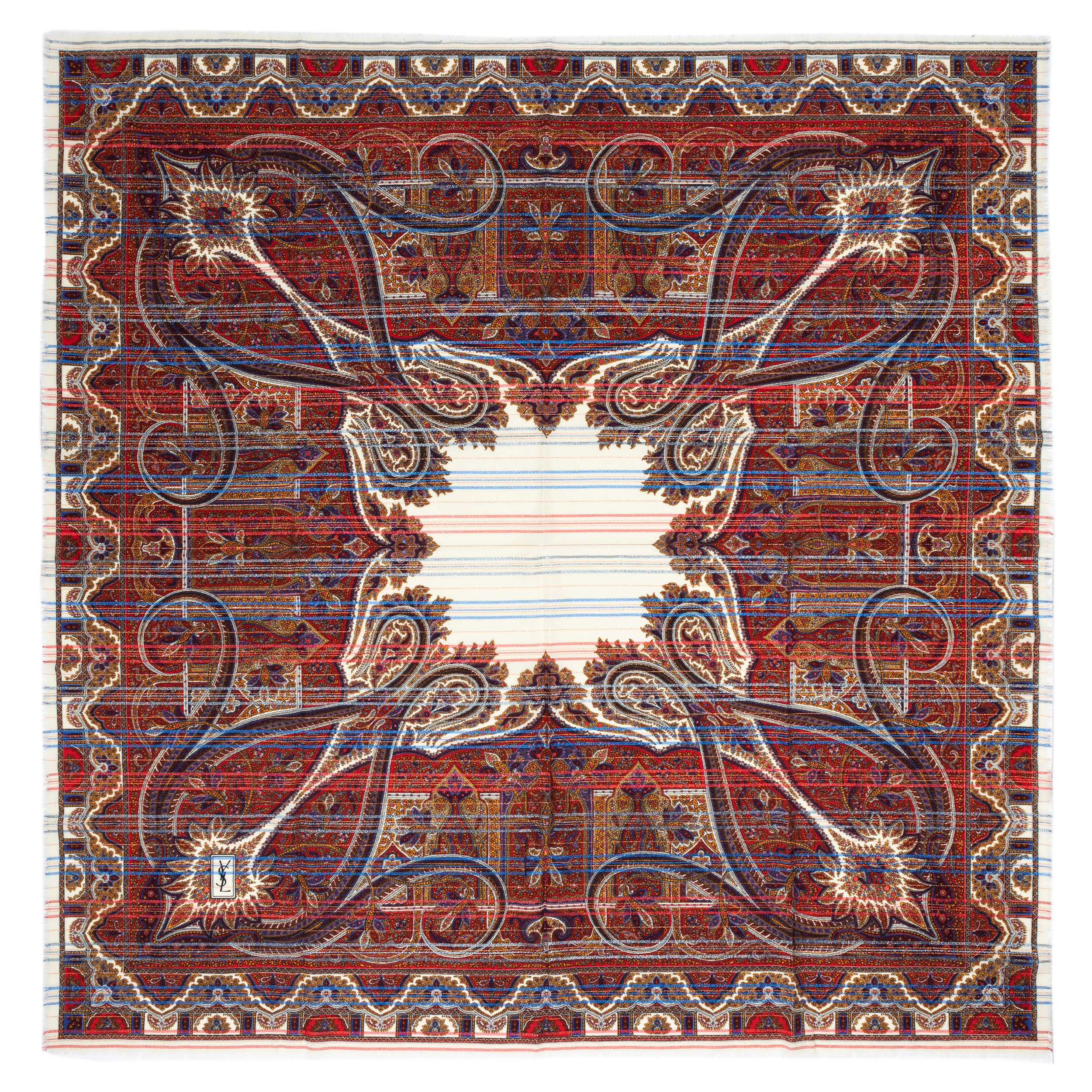 in misto lana a motivo cachemire multicolor e righe in lurex, cm 130 x 130, (lievi difetti)