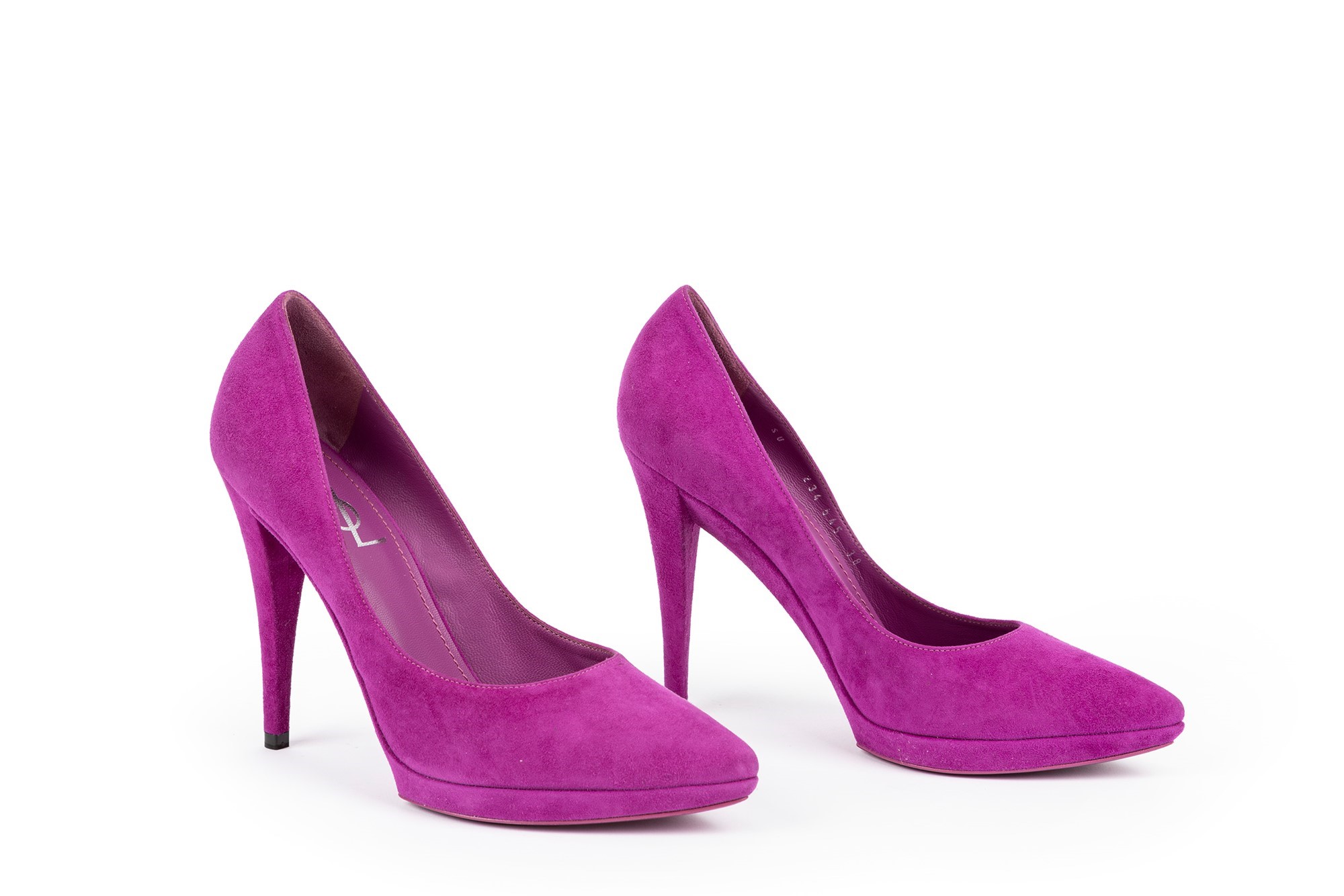 in camoscio color violetto, tacco cm 12, misura 38, con scatola (nuove e mai usate)