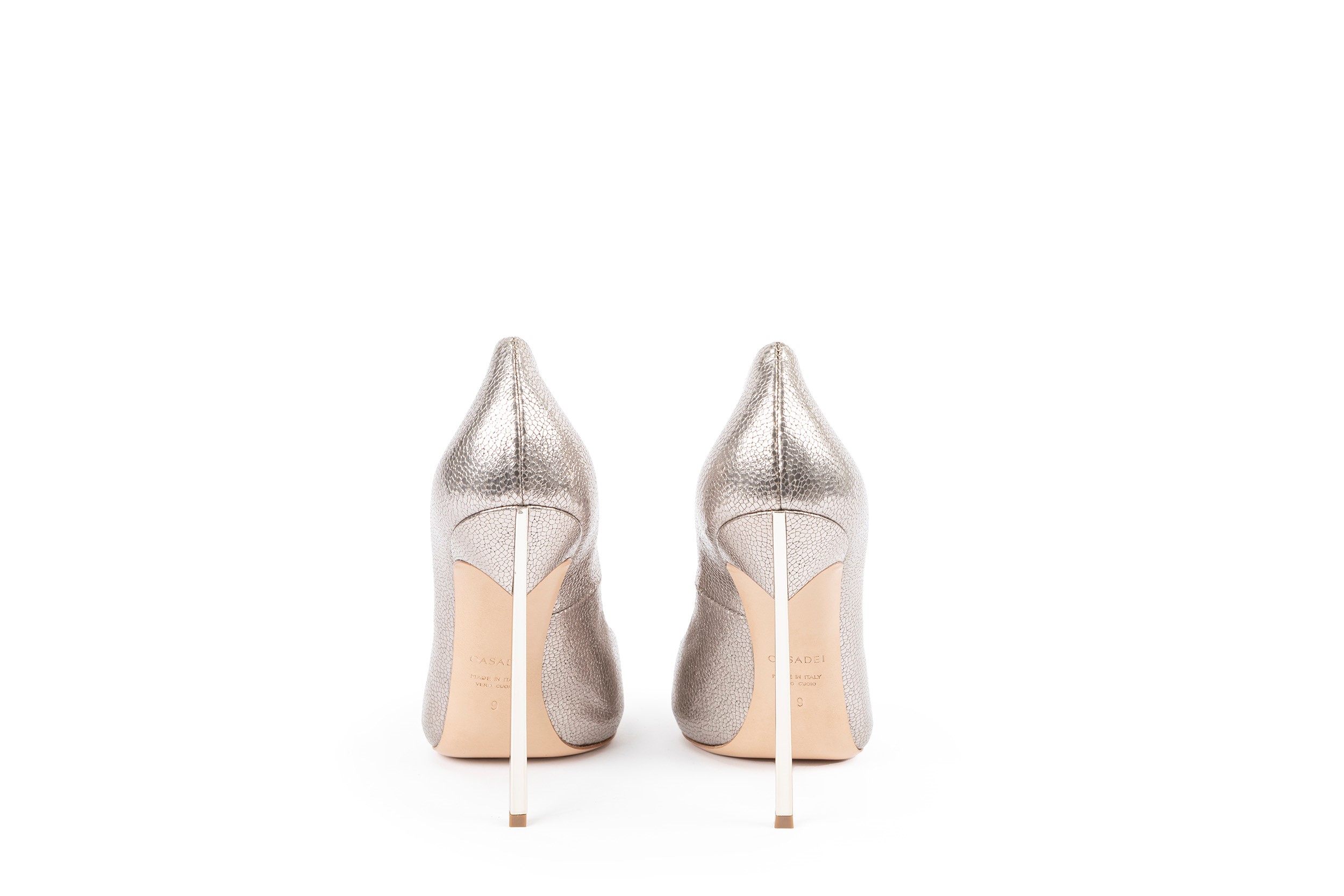 in pelle martellata color argento, tacco cm 13, misura 39 (nuove e mai usate)