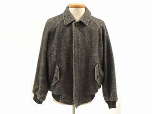 tg 48/50 Anni Novanta in lana spigata grigia e nera, chiusura con zip, lievi difetti e segni d'uso