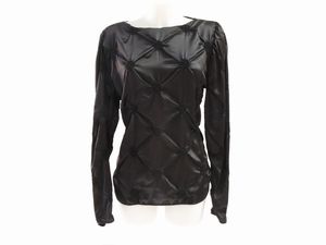 tg 44 Anni Novanta in seta nera, con piccole arricciature circolari, scollo rotondo, lievi difetti