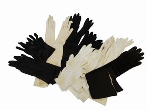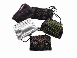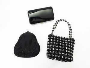 di diversa tipologia e tessuto e pelle nera, ornate da perline, lievi difetti (5)