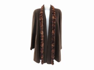tg 46 ampio taglio svasato, manica scesa, bordura in visone marrone