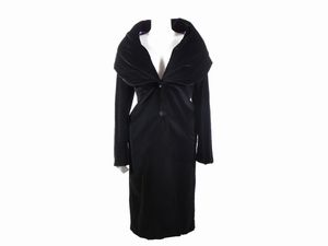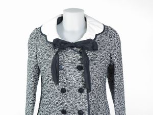 tg 44 Anni Sessanta modello svasato, ornato da inserto in passamaneria nera, chiusura monopetto, lievi difett [..]