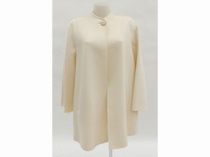 tg 44/46 Primi Anni Novanta in lana bianca, taglio trequarti, chiusura con unico bottone allo scollo, lievi d [..]