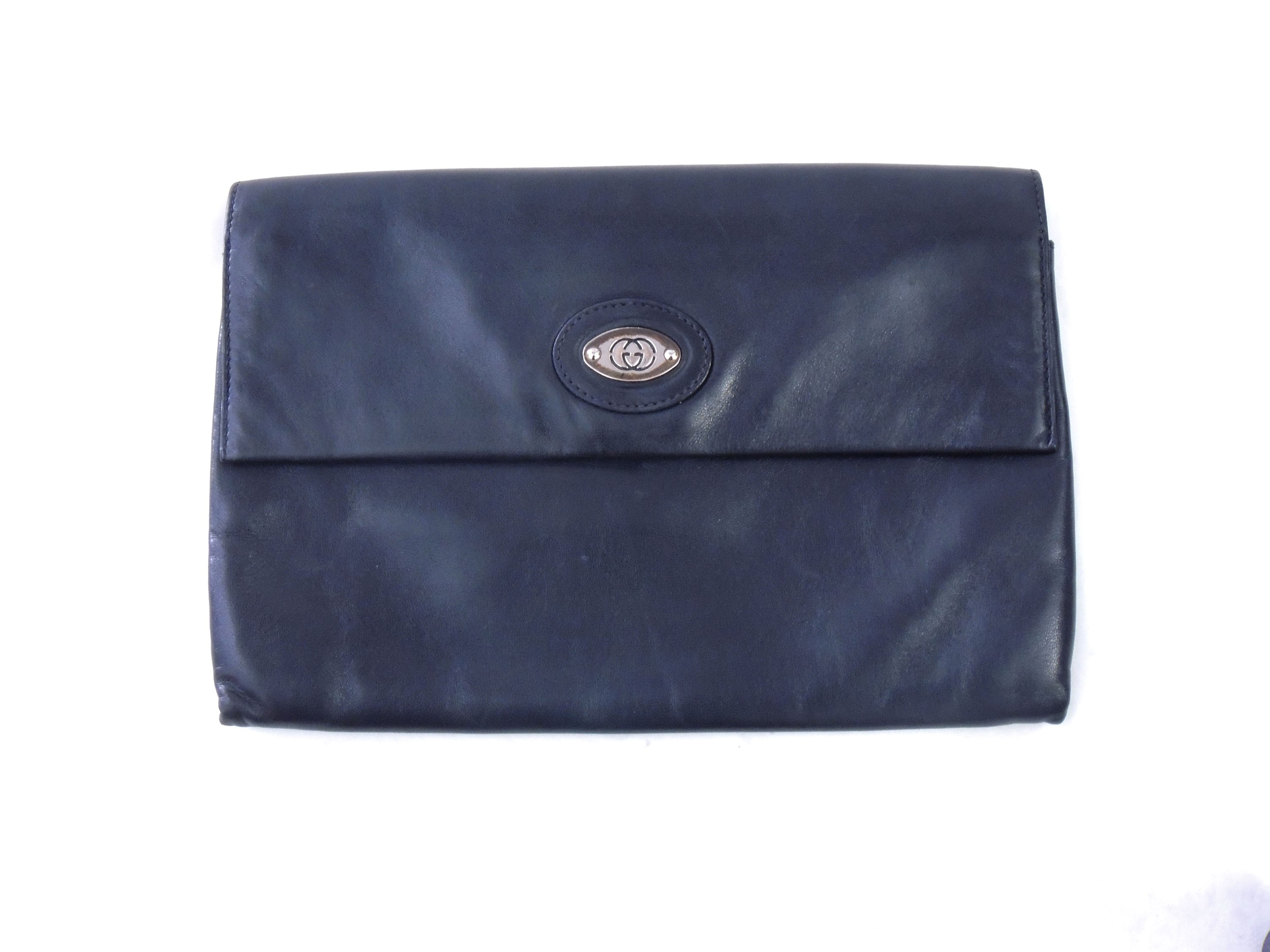 Primi Anni Ottanta in pelle blu con marchio in metallo argentato sul fronte, lievi segni d'uso