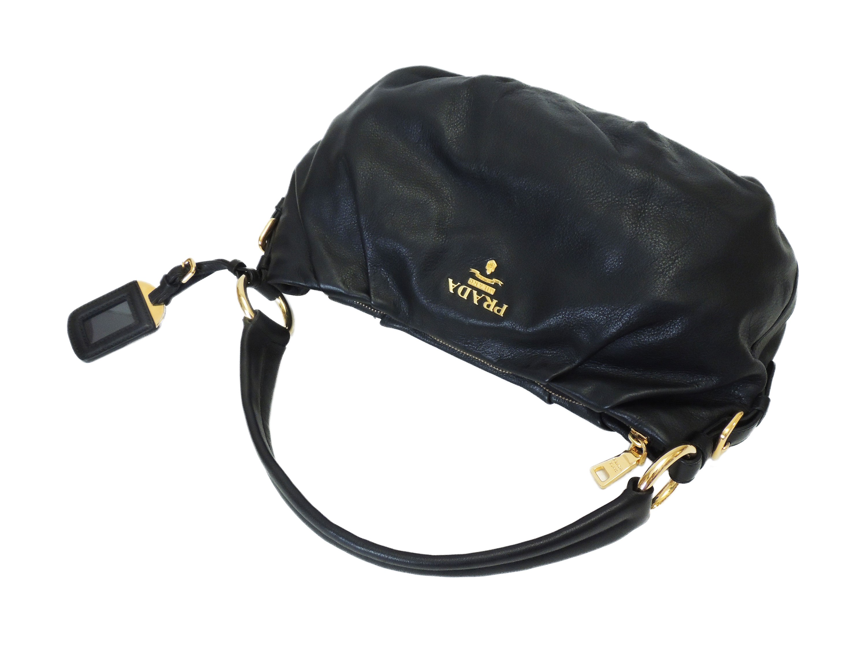in pelle soft nera, dettagli del manico e marchio sul fronte in metallo dorato, porta targhetta pendente, interno con fodera nera monogram ed un taschino, corredata di sacchetto originale, buone condizioni