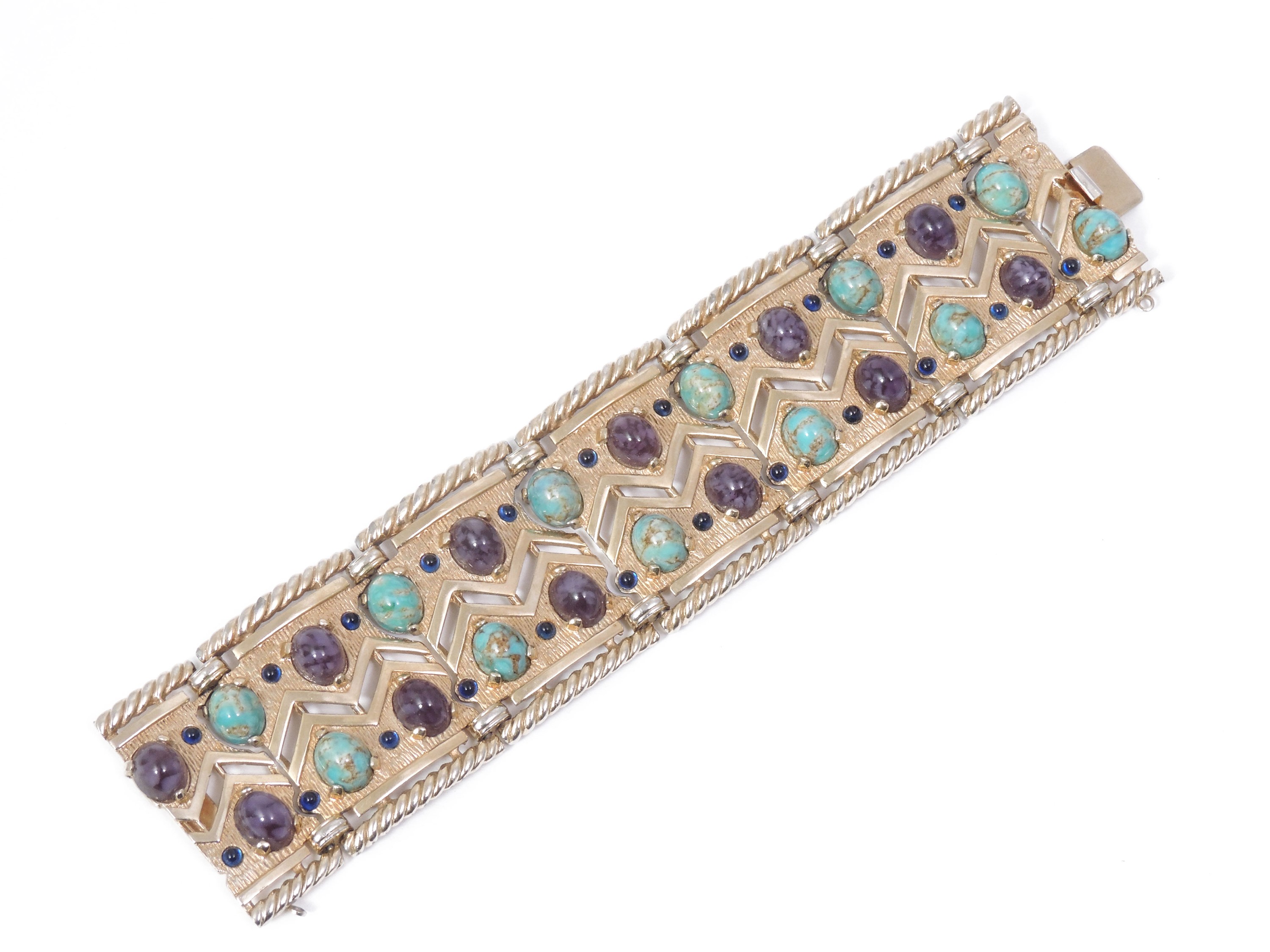 America, Anni Sessanta formato da placche traforate e ornate da cabochon simulanti l'ametista ed il turchese, lievi mancanze e segni d'uso