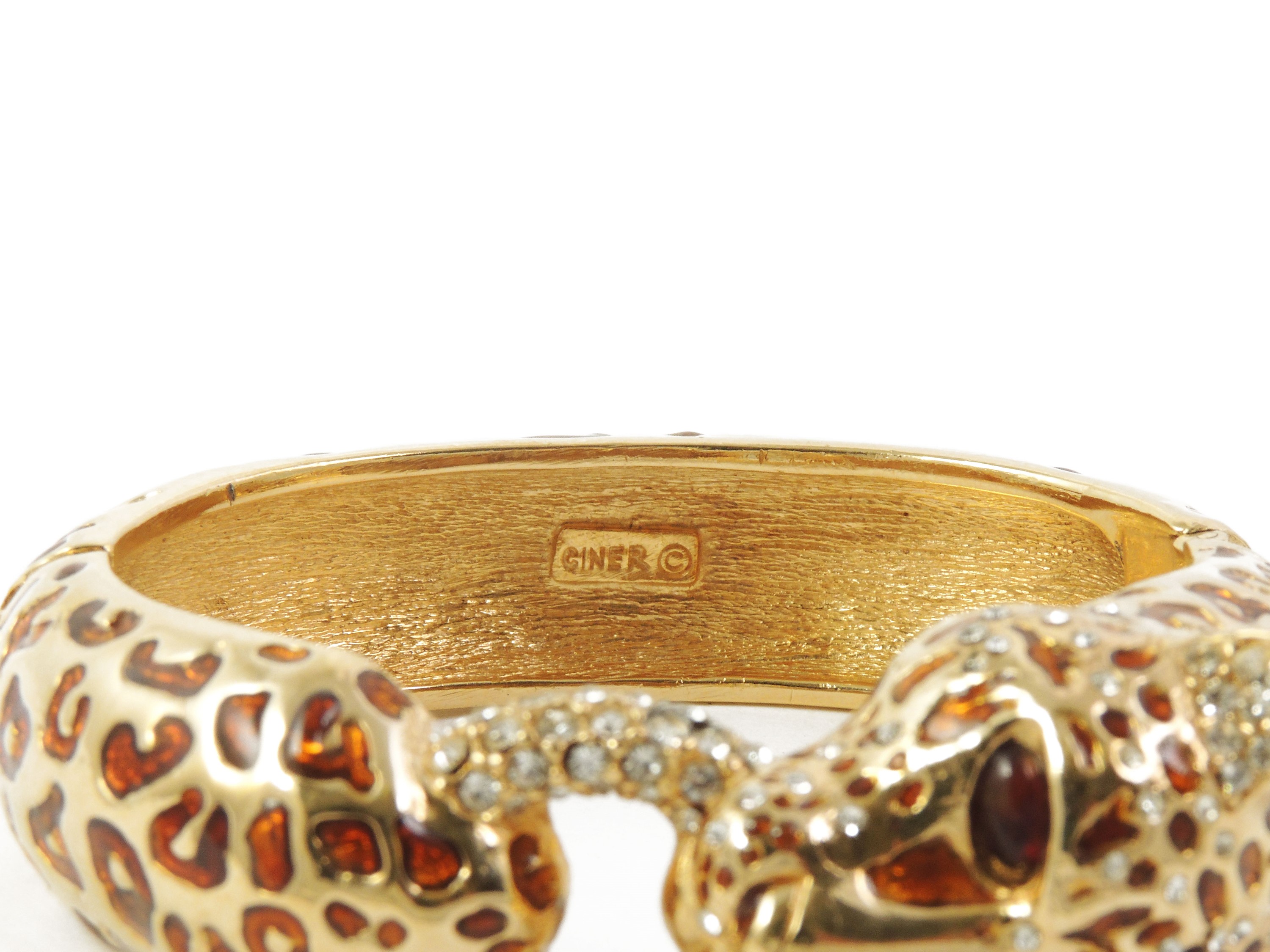 Anni Ottanta a forma di leopardo, ornato da smalti marroni e strass, lievi mancanze allo smalto diam max interno cm 6
