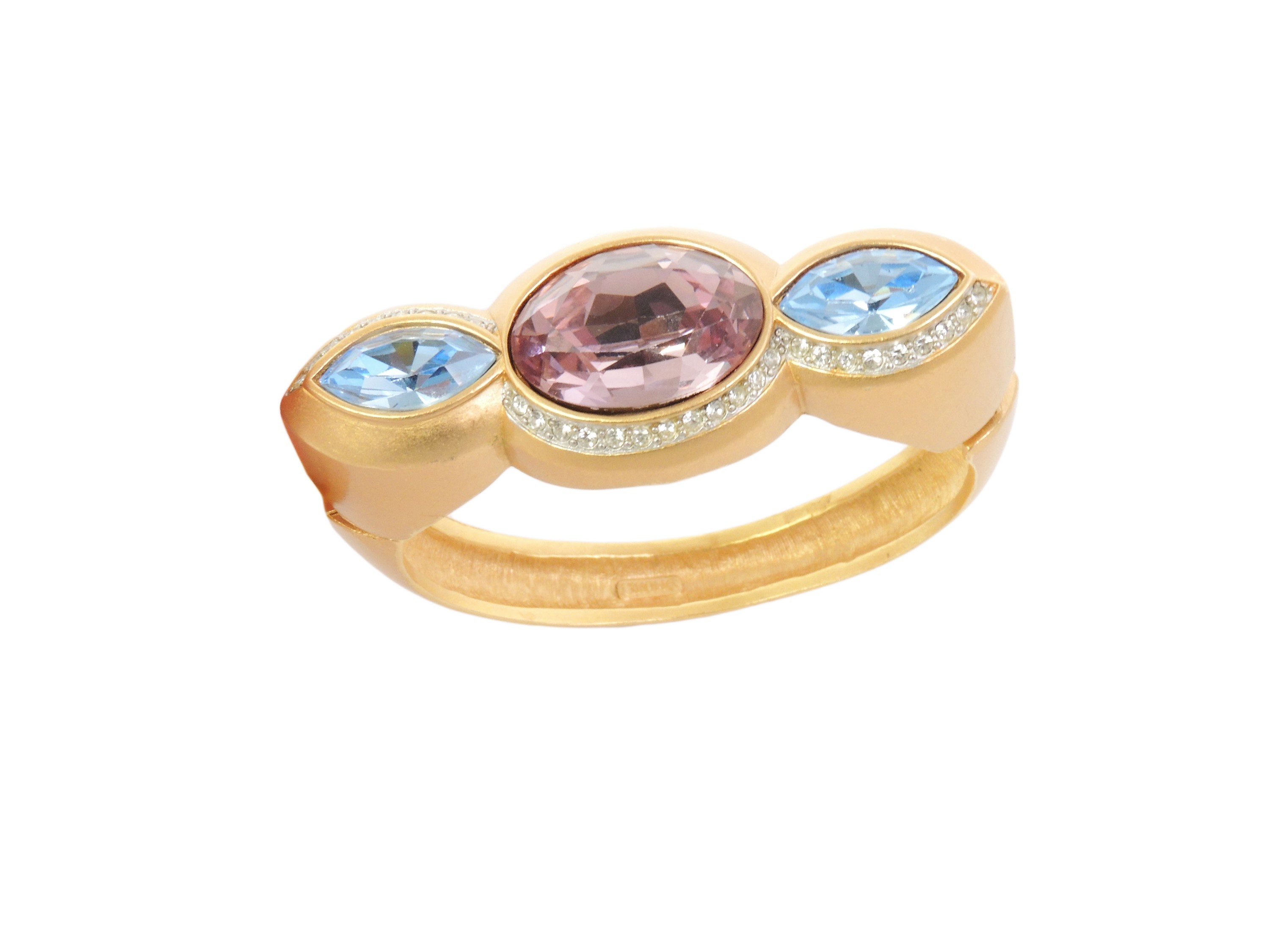 Bracciale rigido in metallo dorato, strass e cristalli, Monet