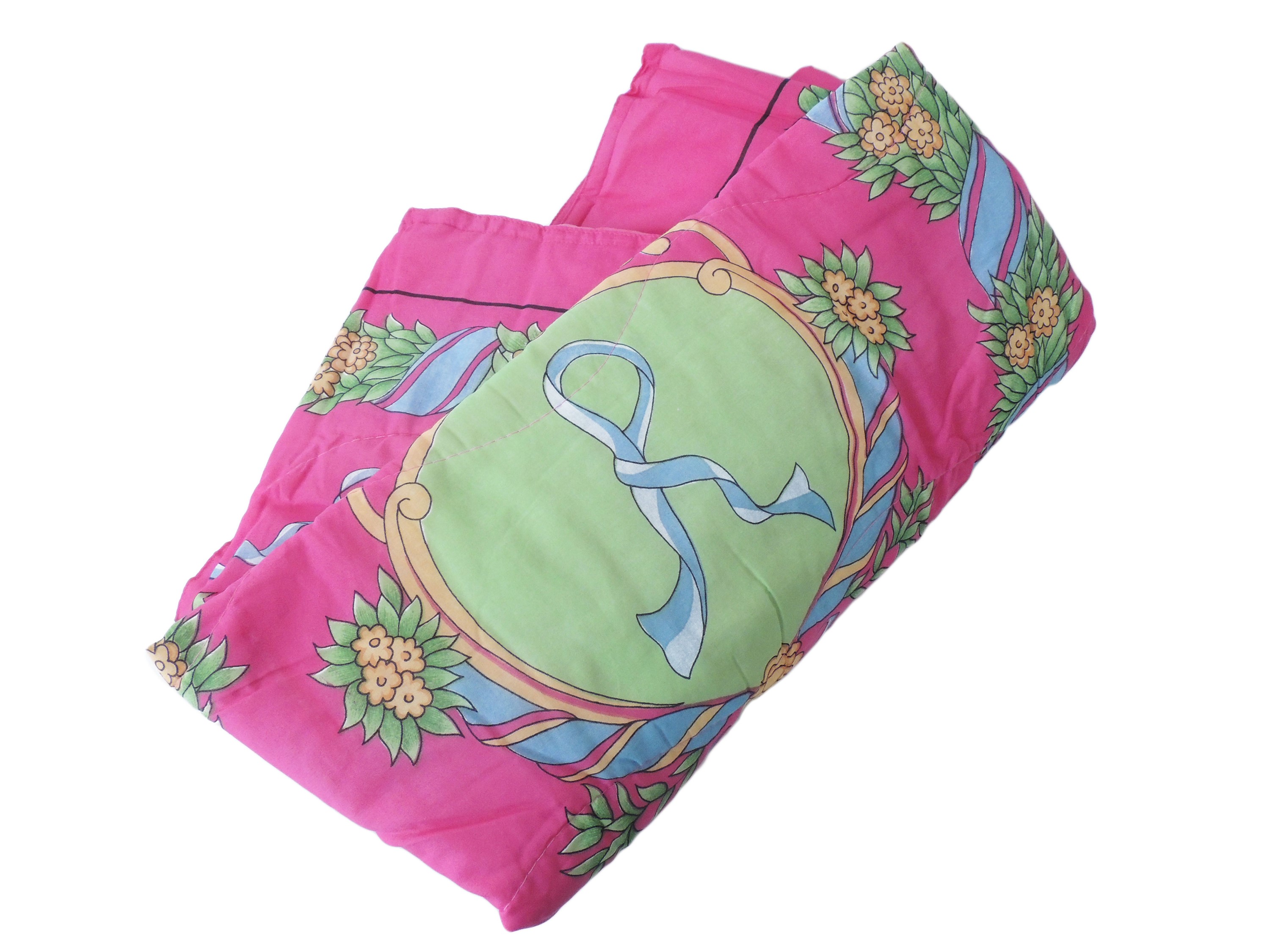 Anni Ottanta in cotone e poliestere fucsia con stampa floreale e monogram centrale, disegnato per il marchio Modafil, buone condizioni