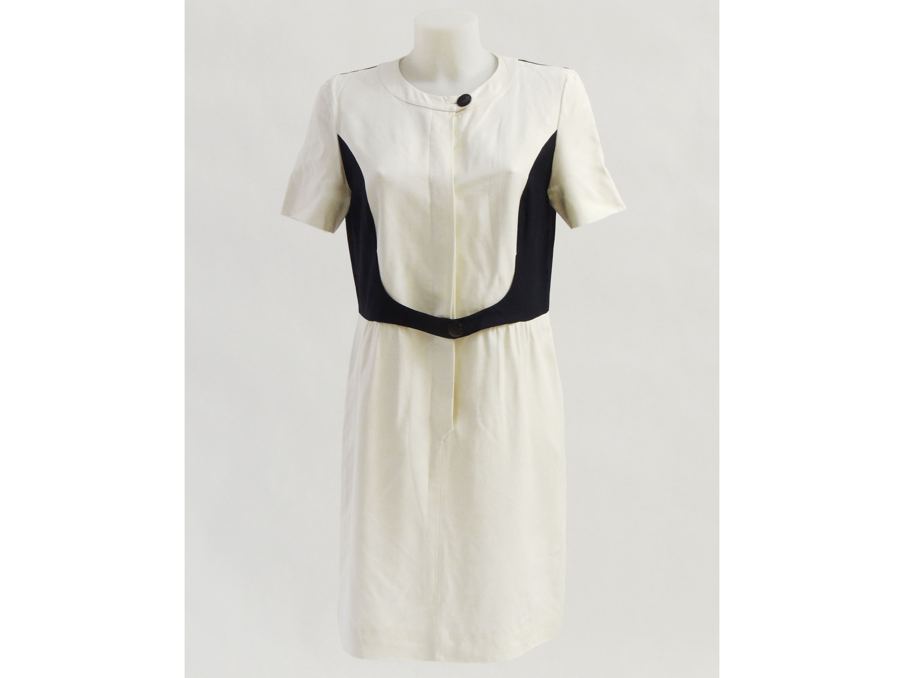 uno in viscosa bianca e blu, scollo rotondo e mezza manica, l'altro in viscosa color tabacco e bianco, scollo rotondo e mezza manica, corredato di cintura, lievi difetti