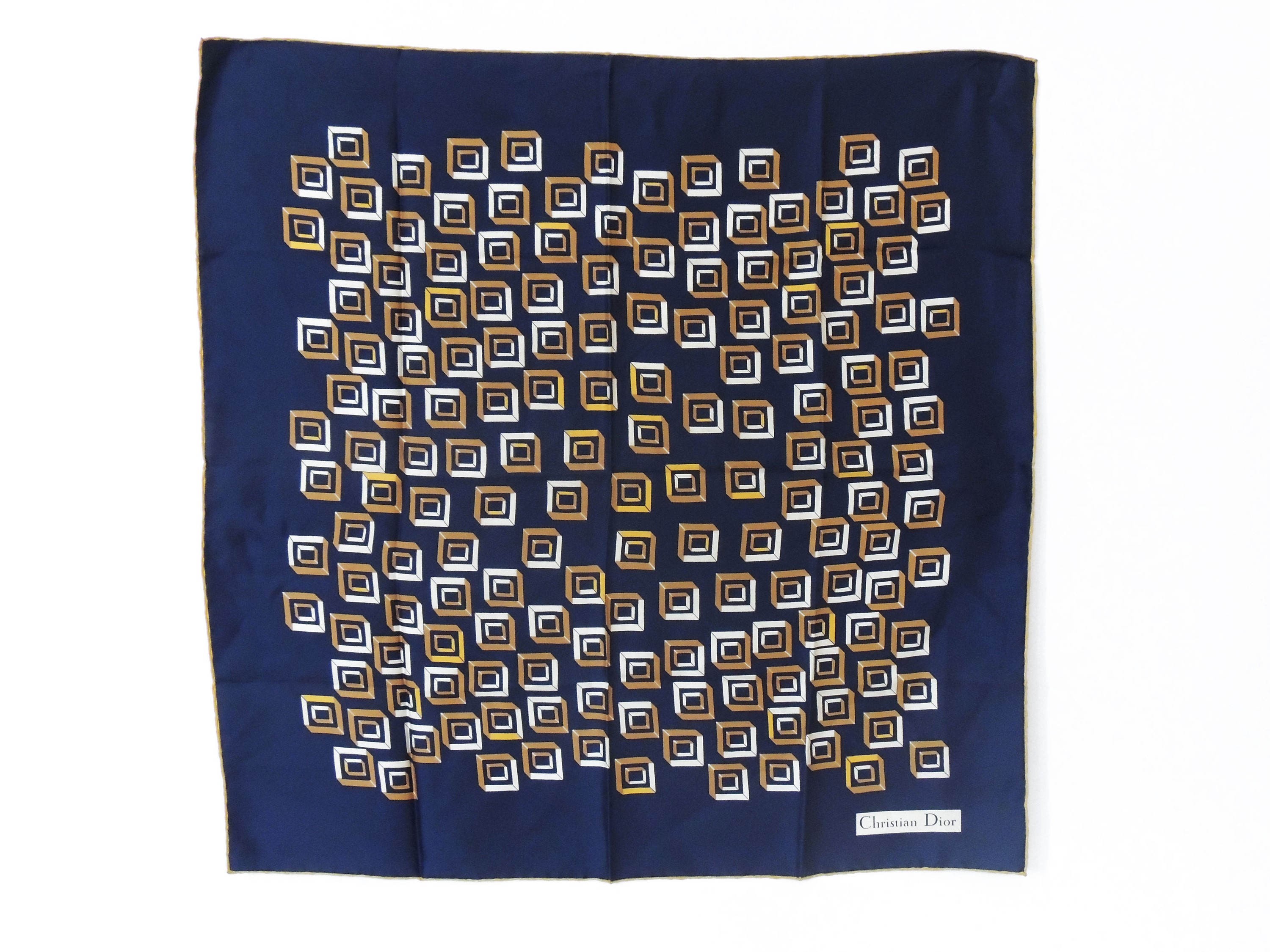 Primi Anni Ottanta in seta a stampa geometrica su fondo blu, lievi difetti