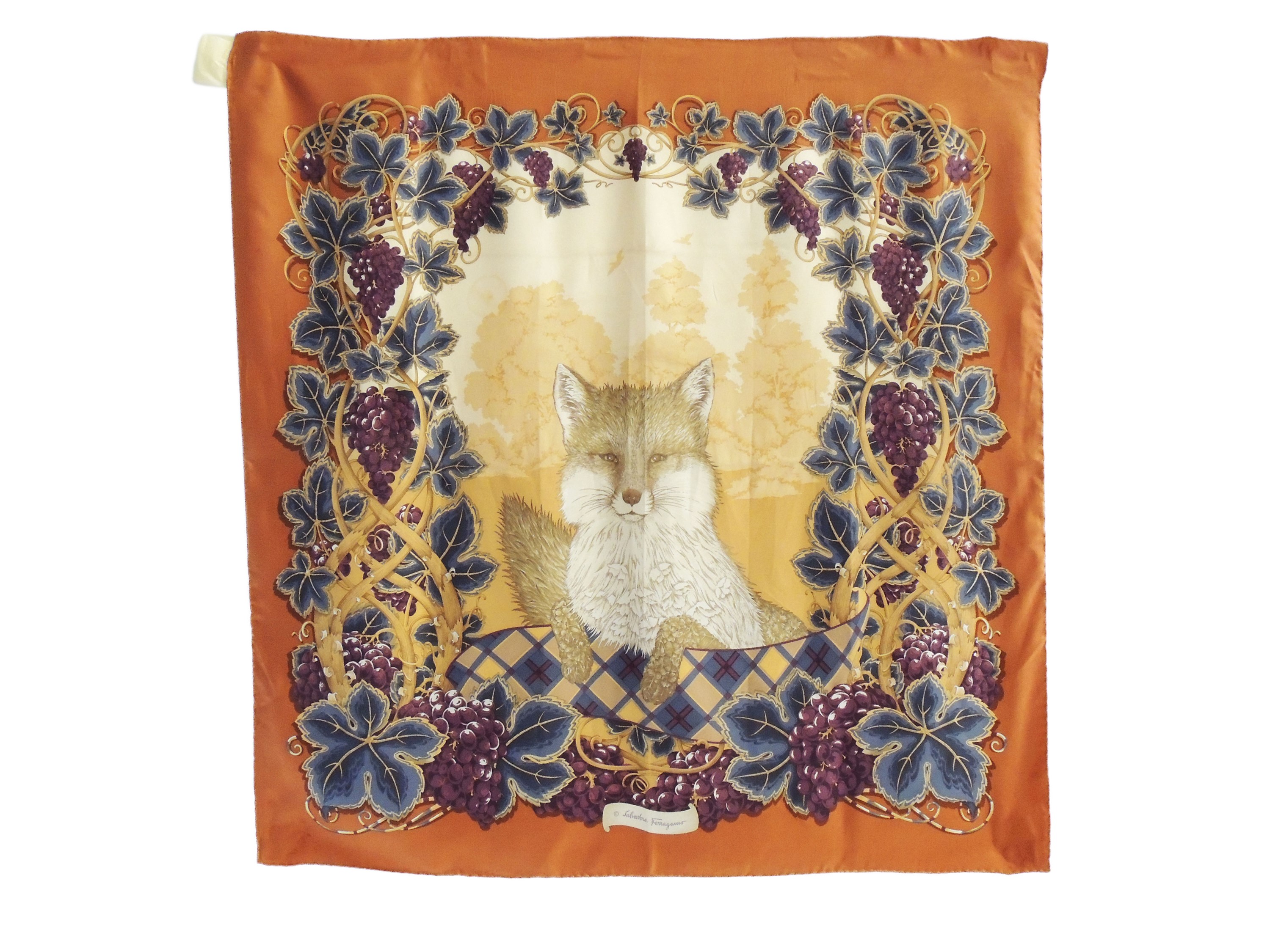 stampa animalier con volpe incorniciata da pampini e grappoli d'uva, bordura color ruggine, lievi difetti e alcune macchie
