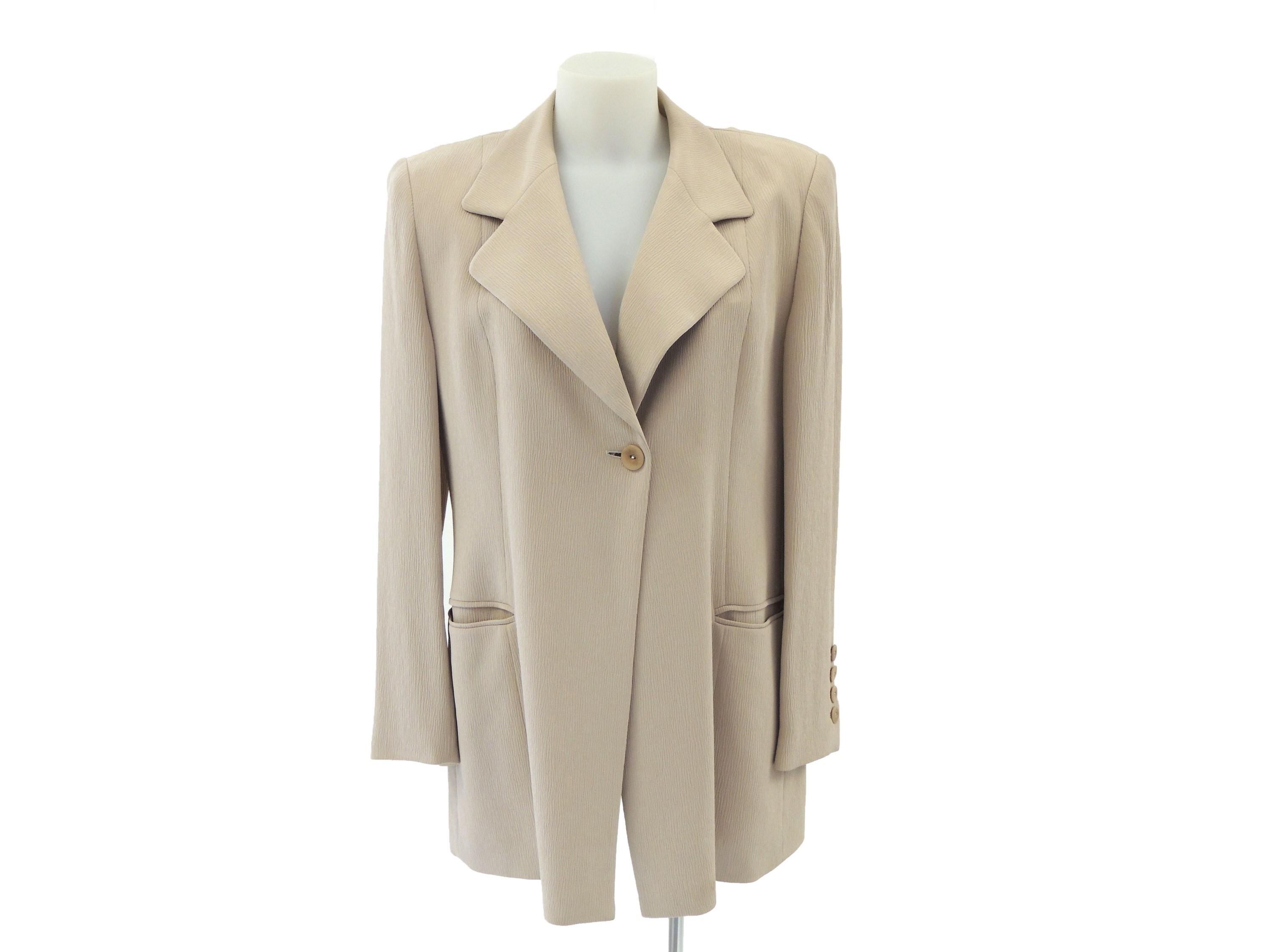 Anni Novanta in seta color tortora, chiusura monopetto, lievi difetti
