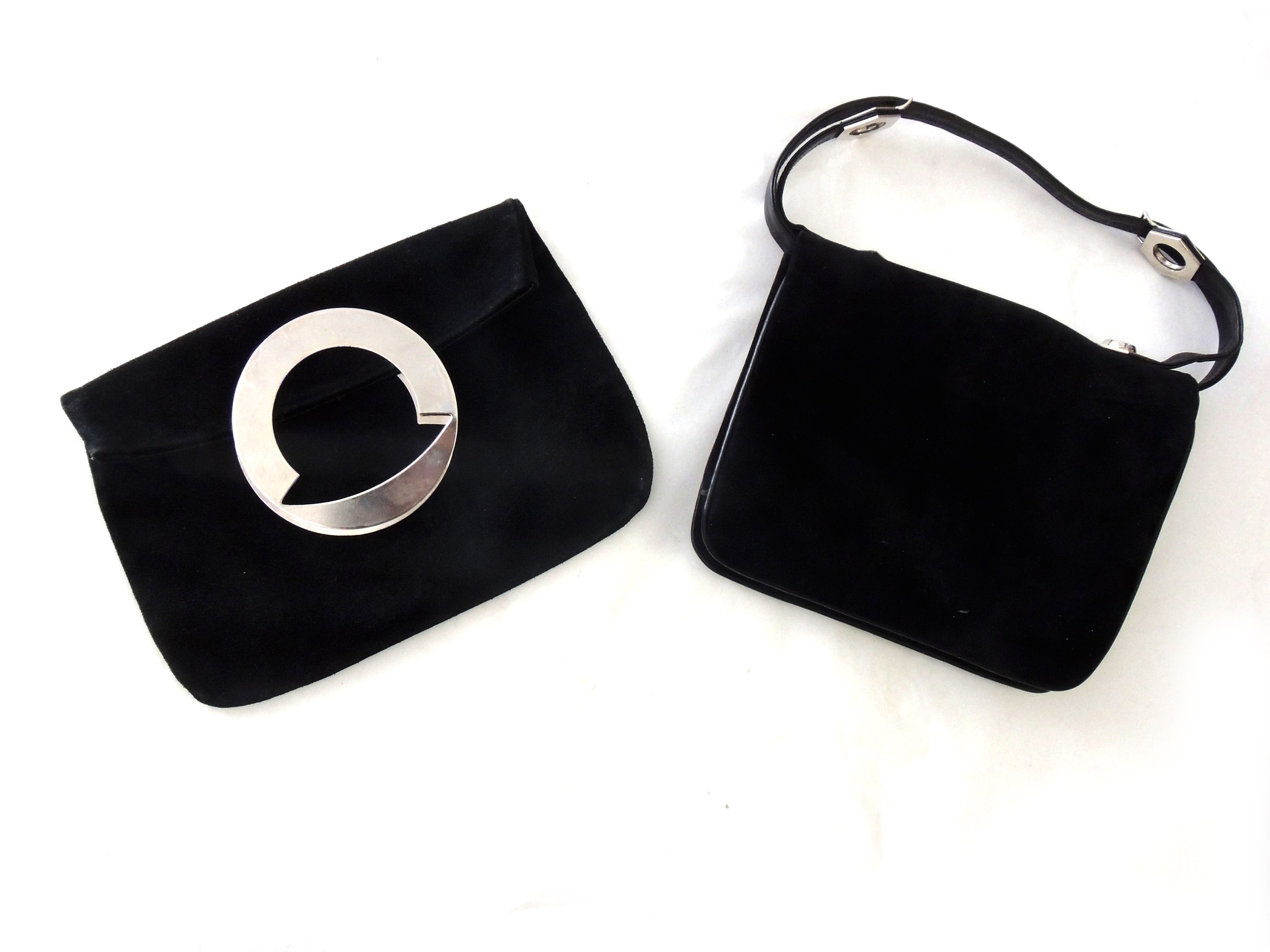 Anni Settanta composto da due borse in camoscio, una in vernice a busta con manici dorati, Beltrami, ed un'altra in pelle nera, difetti (4)