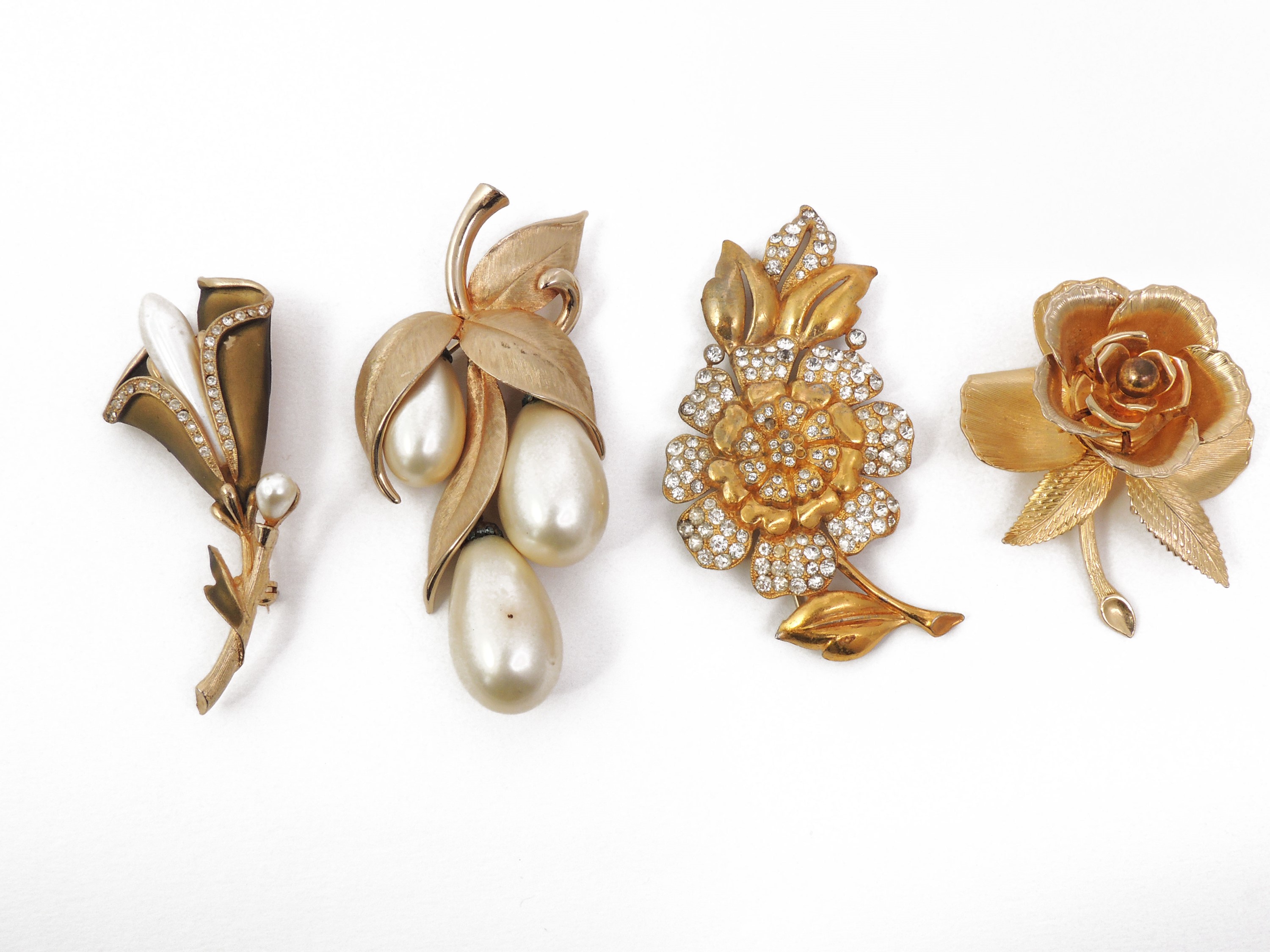 Anni Cinquanta e Sessanta tutte a forma floreale, alcune ornate da strass ed una con perle pendenti, Marvella, alcuni difetti e mancanze