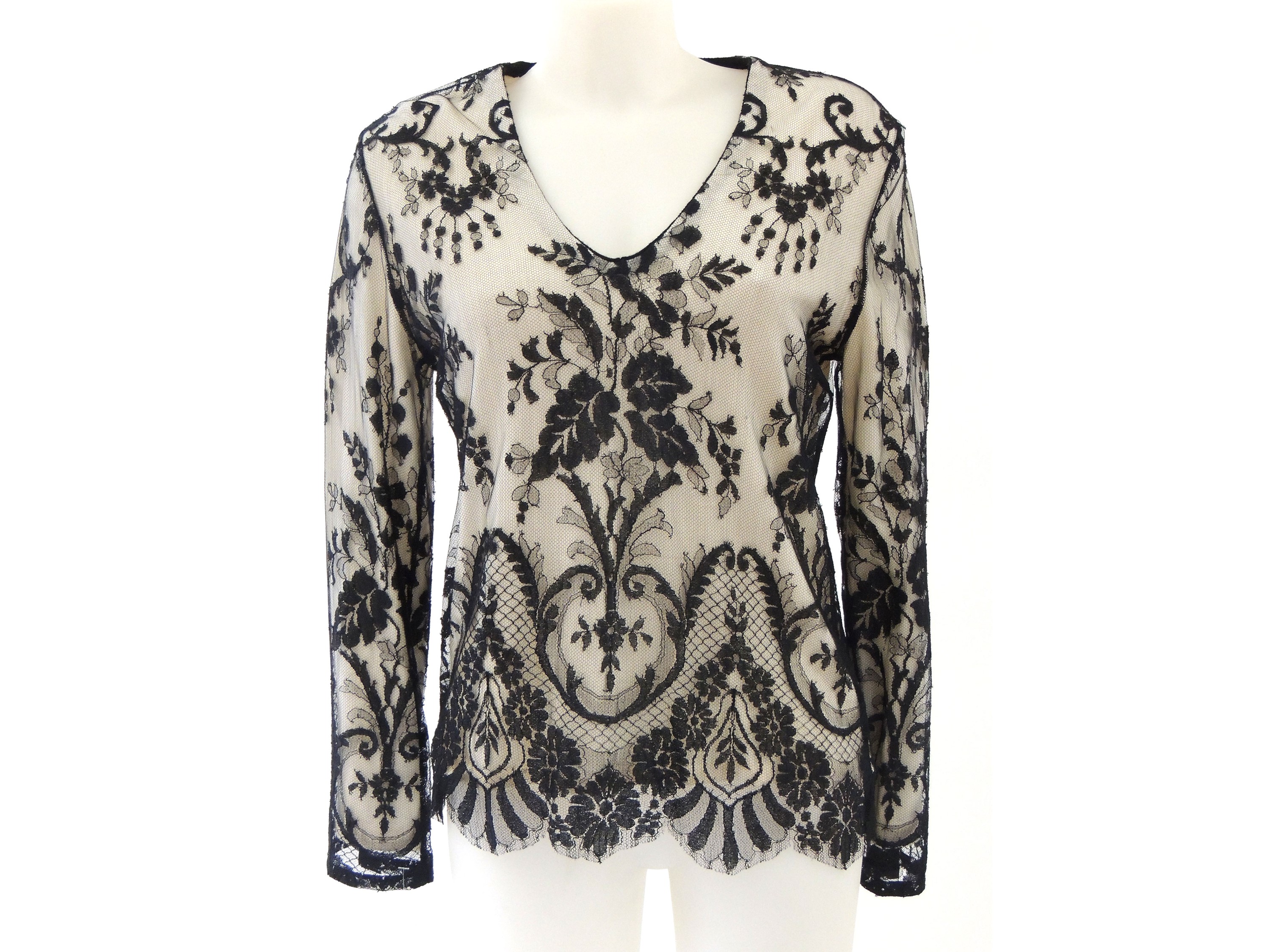 Anni Novanta in lana bianca e pizzo nero, scollo a V, lievi difetti