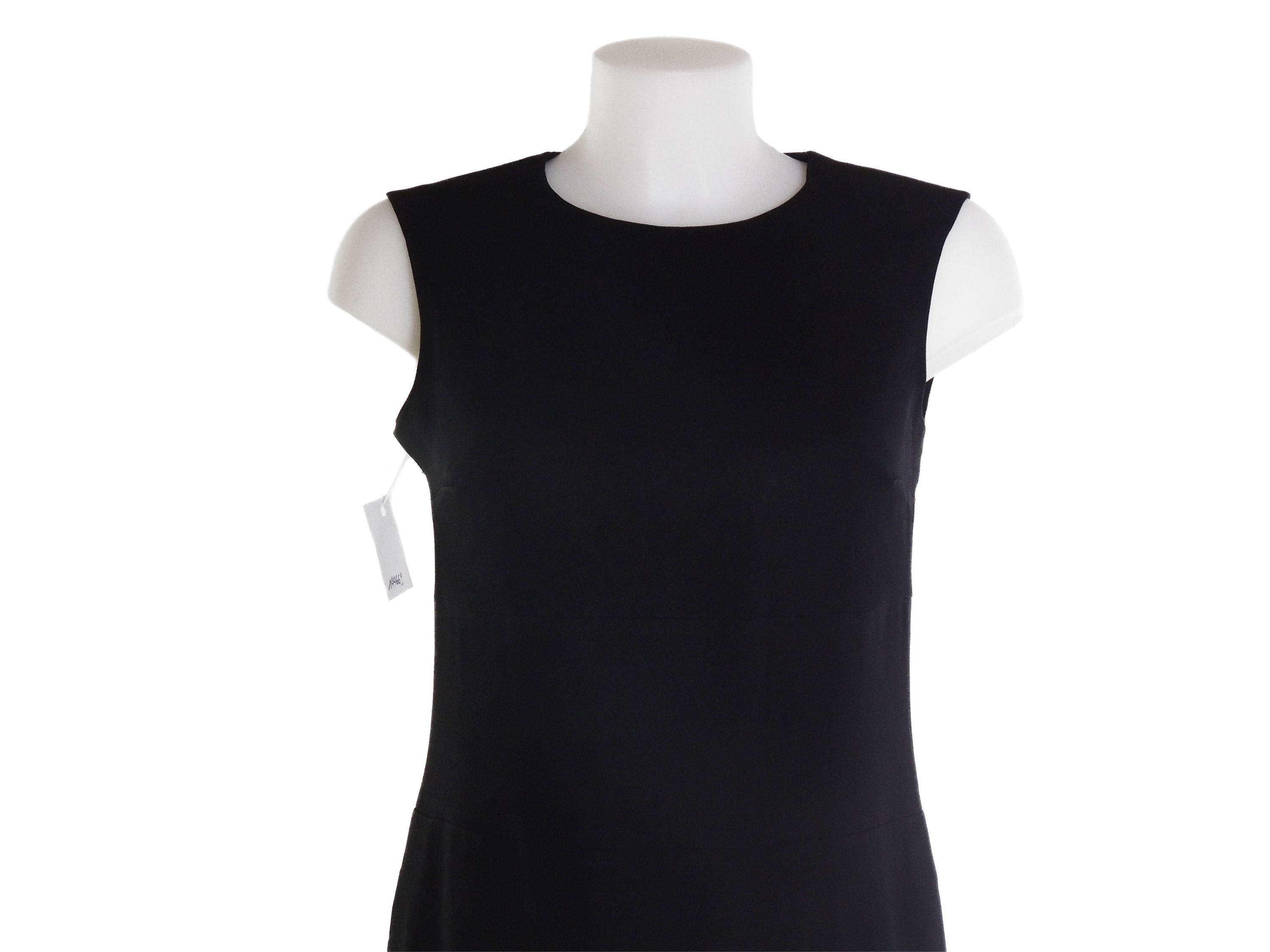 in crepe di lana nera, gonna leggermente svasata, lievi difetti e cerniera da ricucire