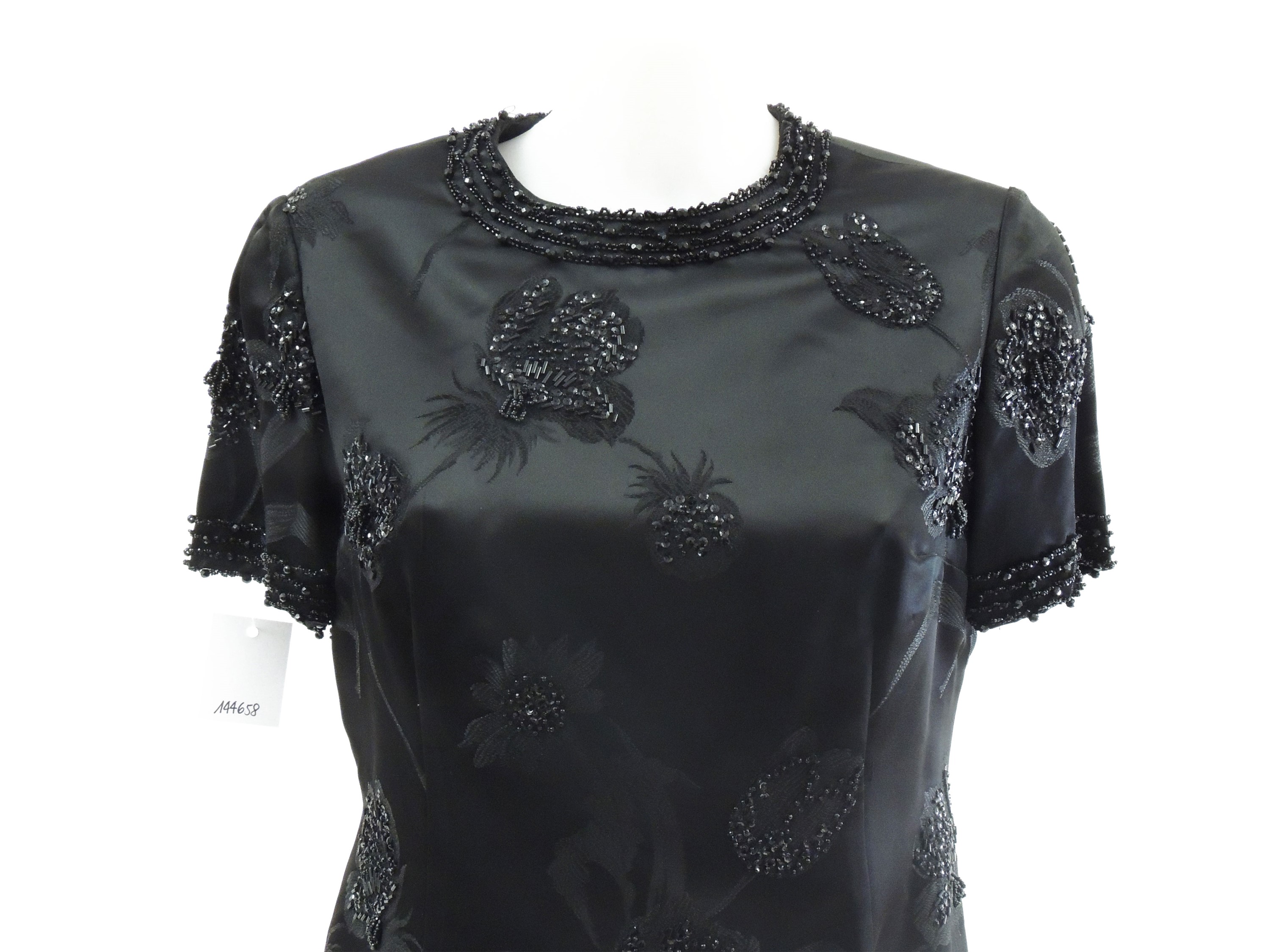 Anni Sessanta in seta nera con ricami floreali e perline, lievi difetti